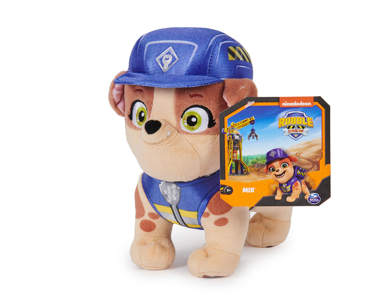 Пригответе се за строителство с плюшените играчки Rubble & Crew! Представени от създателите на PAW Patrol и изработени от висококачествени платнени материали, тези супер меки плюшени играчки са задължителни за феновете на поредицата и чудесен подарък за деца от всички възрасти! Всяко кученце от Rubble & Crew е облечено в автентичната си строителна униформа от шоуто и е високо над 18 см, което ги прави перфектни приятели за игра за децата, които обичат да преживяват любимите си моменти от сериала! За още повече забавления с въображаема игра, потърсете всички плюшени кученца, като Rubble, Wheeler, Mix, Charger и Motor!