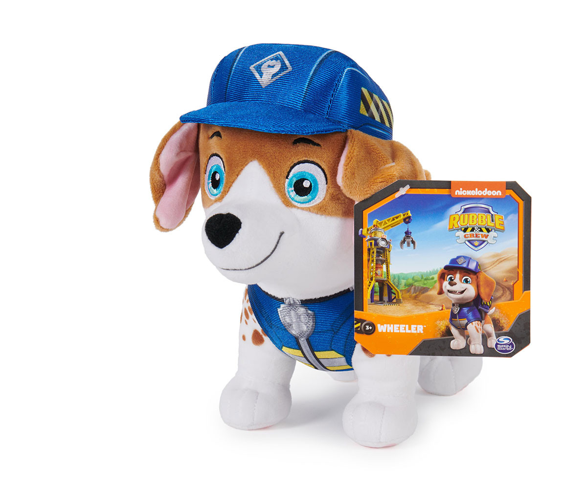 Пригответе се за строителство с плюшените играчки Rubble & Crew! Представени от създателите на PAW Patrol и изработени от висококачествени платнени материали, тези супер меки плюшени играчки са задължителни за феновете на поредицата и чудесен подарък за деца от всички възрасти! Всяко кученце от Rubble & Crew е облечено в автентичната си строителна униформа от шоуто и е високо над 18 см, което ги прави перфектни приятели за игра за децата, които обичат да преживяват любимите си моменти от сериала! За още повече забавления с въображаема игра, потърсете всички плюшени кученца, като Rubble, Wheeler, Mix, Charger и Motor!