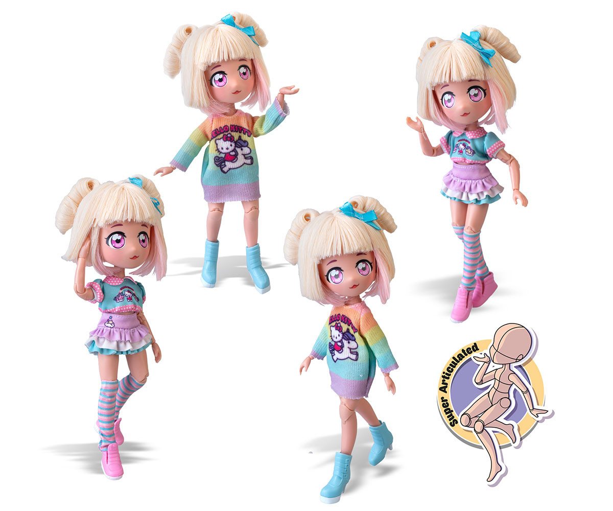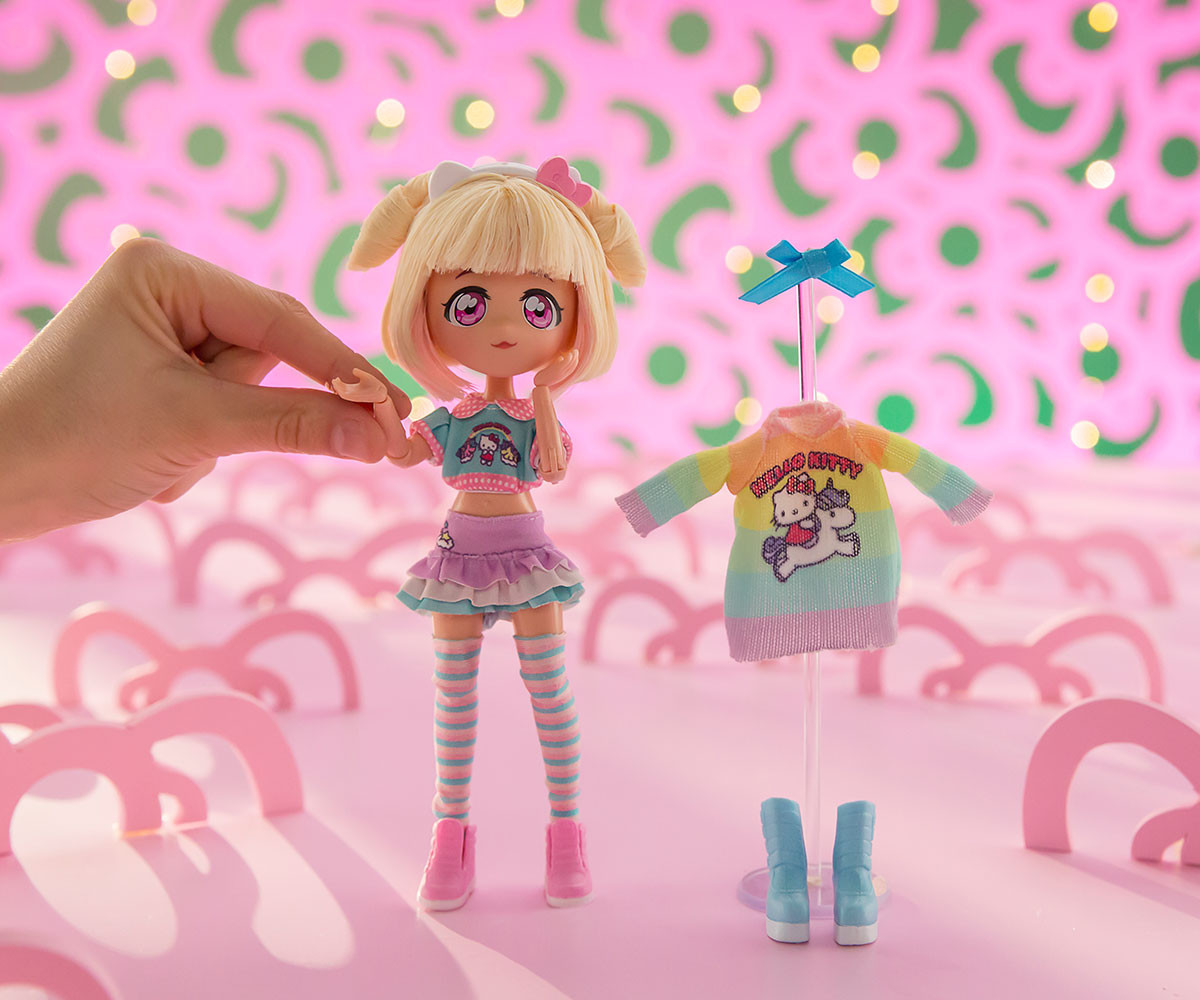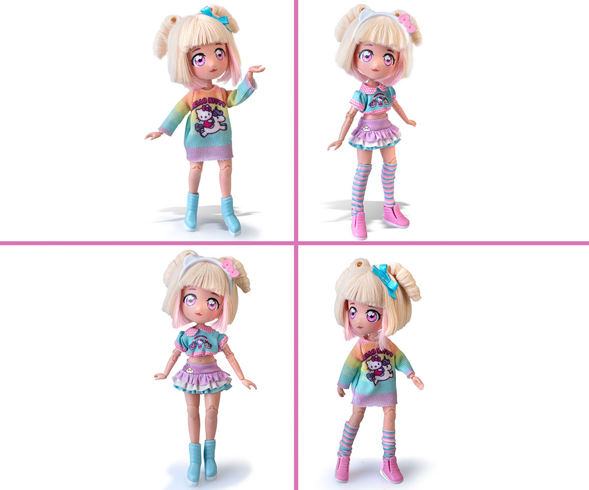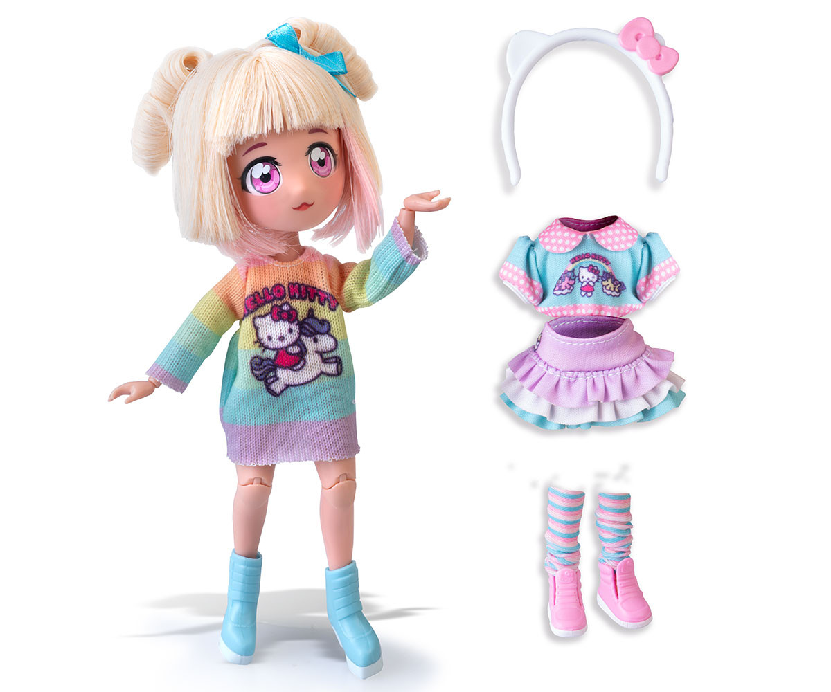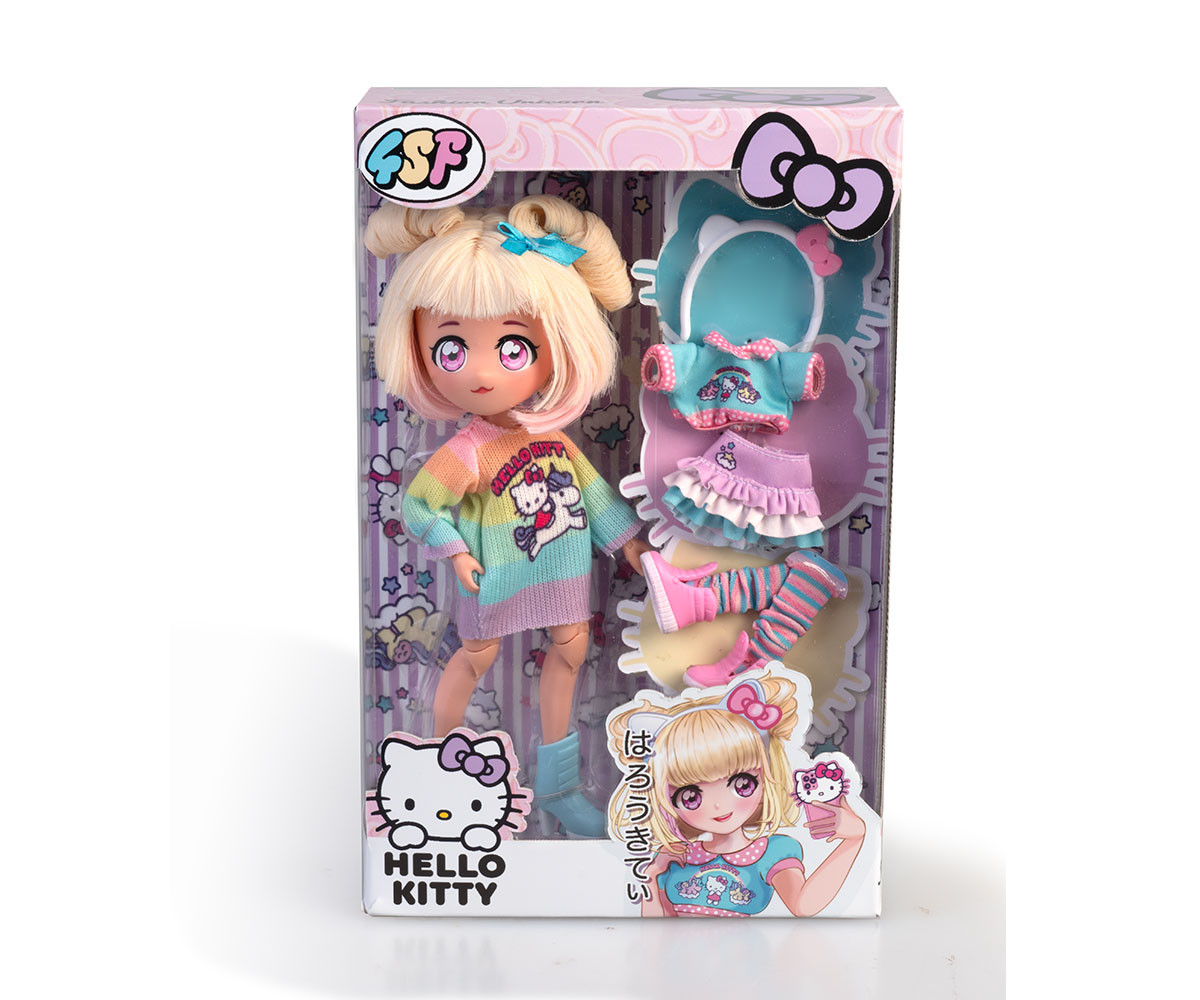 Потопи се отново в света на Hello Kitty! Открий тази нова и уникална колекция от подвижни кукли със собствен стил, вдъхновен от емблематичния герой Hello Kitty. Твоята кукла сменя стила си и става още по-модерна! Благодарение на допълнителния цялостен тоалет, можеш да създаваш уникални визии и да се забавляваш, комбинирайки ги според настроението си!