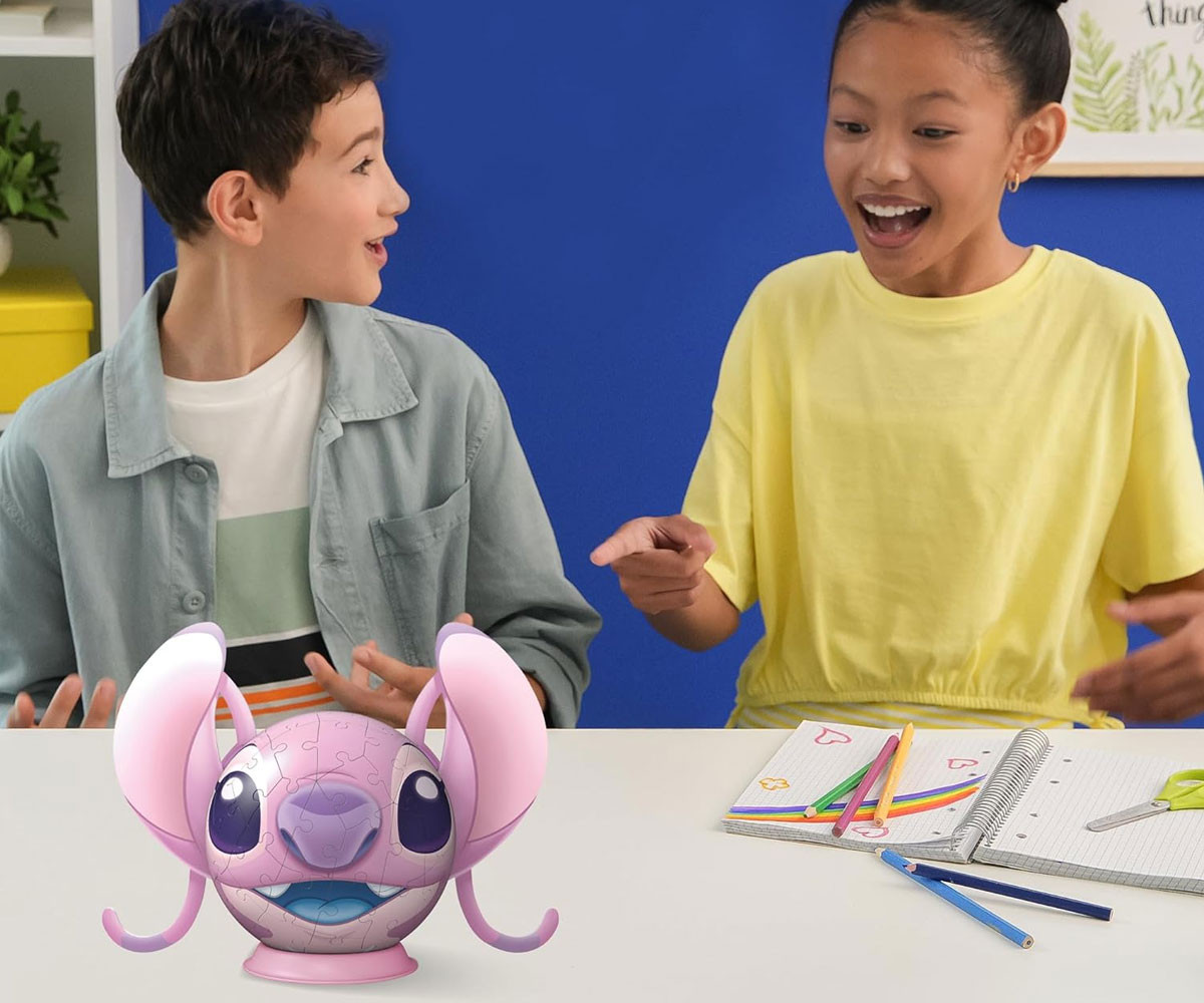 Този страхотен мотив с Disney Stitch не само е забавен за редене, но и изглежда чудесно като декорация във вашата стая! Създаден от 72 извити пластмасови части, които се напасват перфектно благодарение на технологията Easyclick, този стабилен 3D пъзел във формата на сфера може да бъде сглобен без необходимост от лепило. Номерацията на гърба на всяка част улеснява подреждането и позволява сглобяване по номера за още по-лесен и приятен процес.