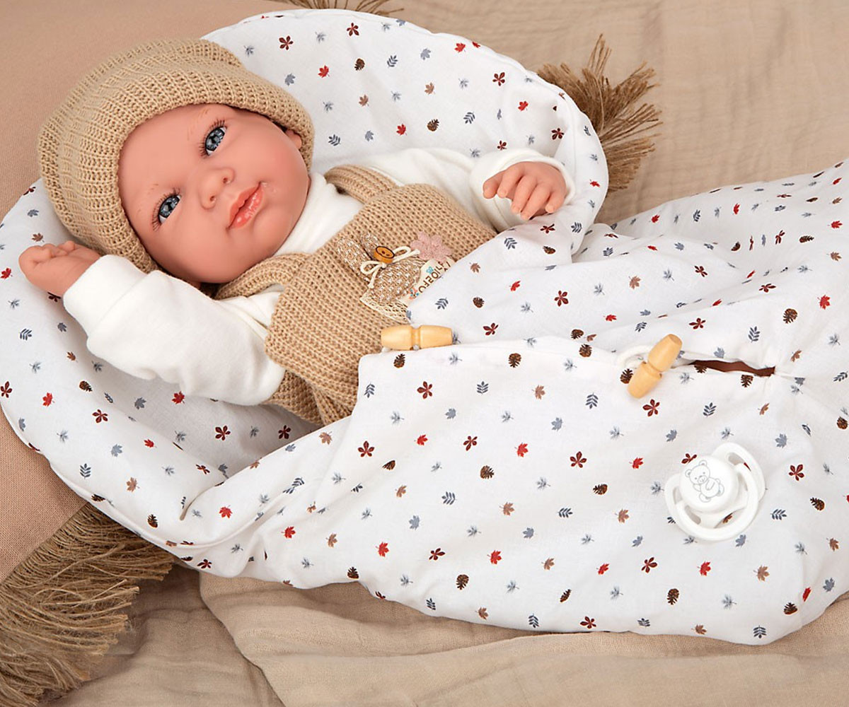 - Name: Arias 60898 - Elegance Collection Beige Cris Elegance doll with sleeping bag (weighted doll)