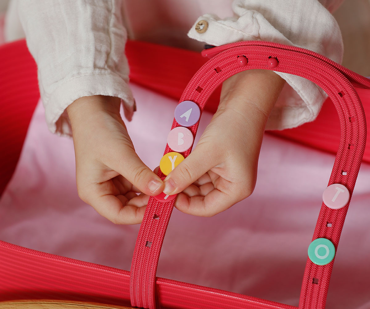 Специалните отвори по конструкцията на люлката позволяват украса с цветни пинове (предлагат се отделно). Децата могат да създават букви, животни, форми или собствени шарки, превръщайки люлката в персонализирано творение. Това не само насърчава творчеството и индивидуалността, но и подпомага развитието на фината моторика, концентрацията и чувството за отговорност.