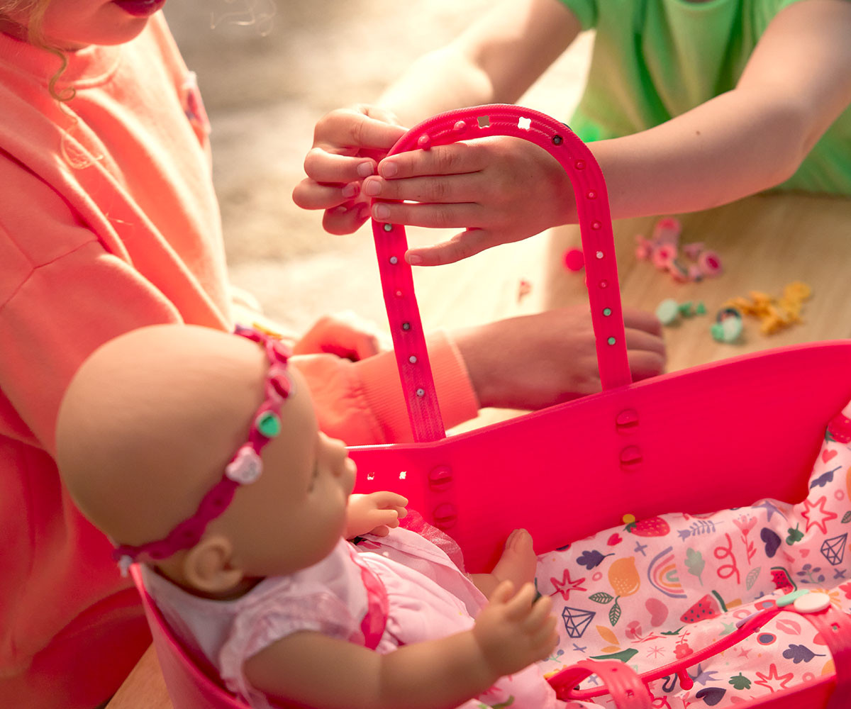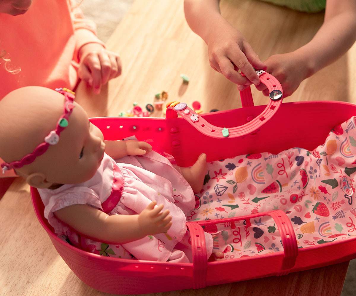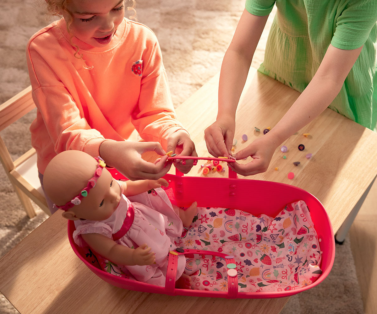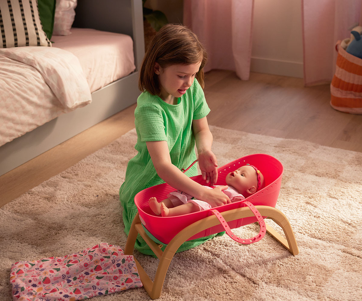 Многофункционално легло с креативна Pinplay система. С BABY born 3-в-1 люлка с Pinplay функция в детската стая влиза играчка, която обединява няколко роли в едно – люлка, преносима чанта и малко легълце за път. Тя е едновременно практична и креативна, с високо качество на изработка, характерно за BABY born.