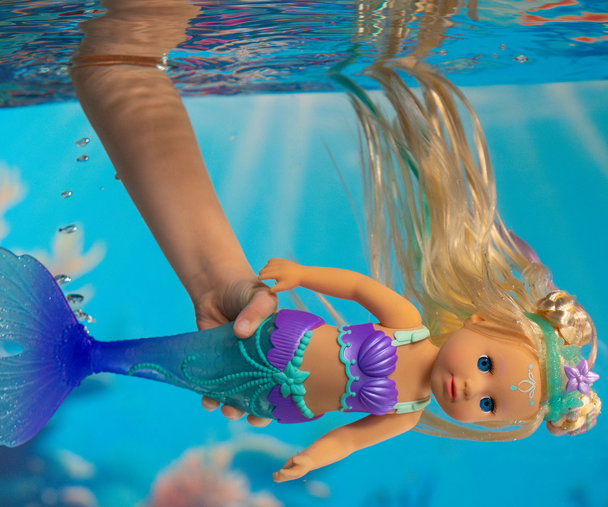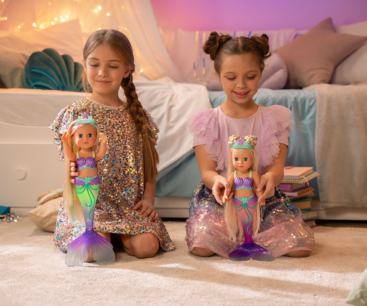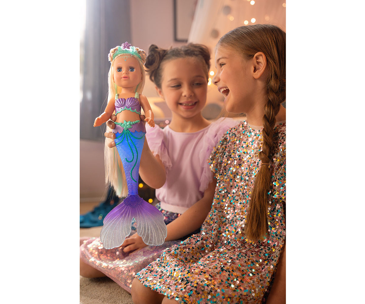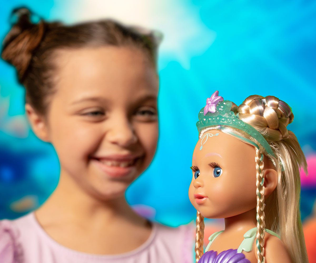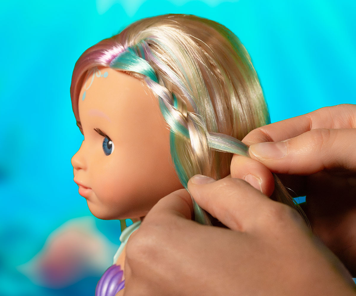 В омагьосаното подводно царство, където слънцето кара вълните да блестят, живее смела и игрива русалка. Денем тя открива коралови рифове заедно със своите морски приятели, а нощем танцува под лунните лъчи, създавайки искрящи вълни със своята магическа опашка. Сега тази приказна русалка е готова да пренесе чара на океана във вашия дом! Превърнете банята в истинско подводно приключение и оставете въображението да се понесе с BABY born Русалка с дълга коса!