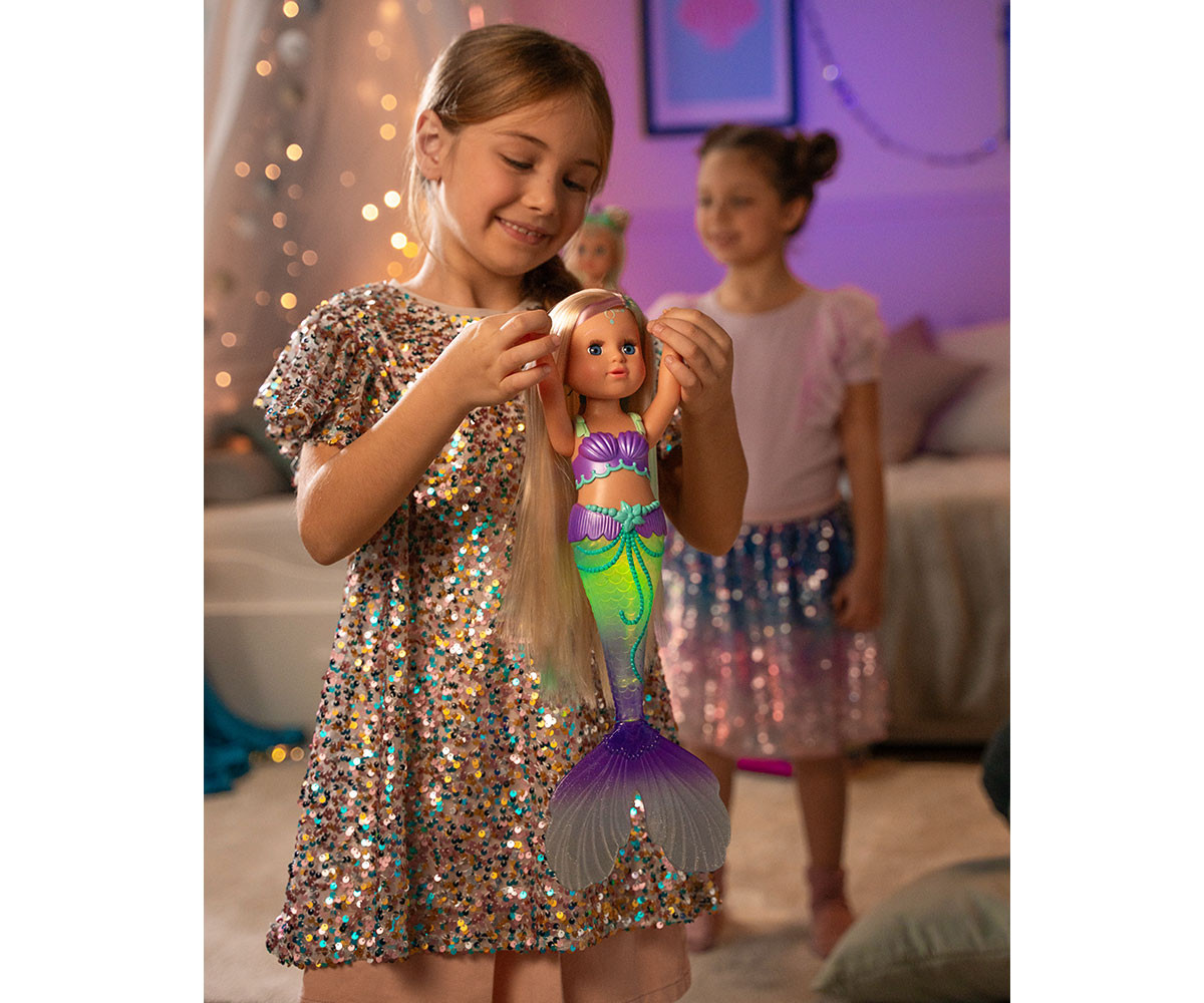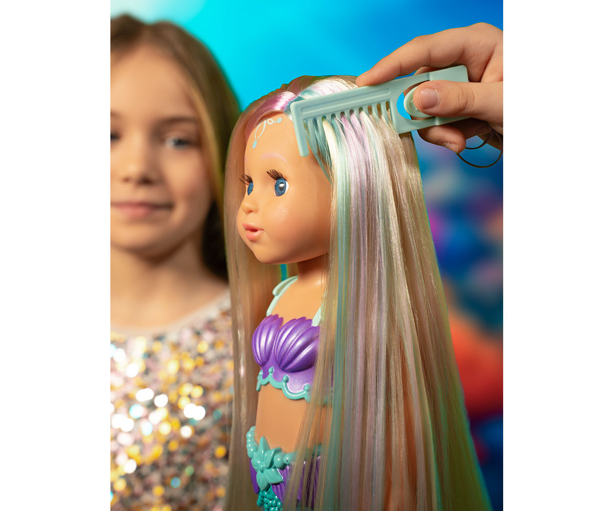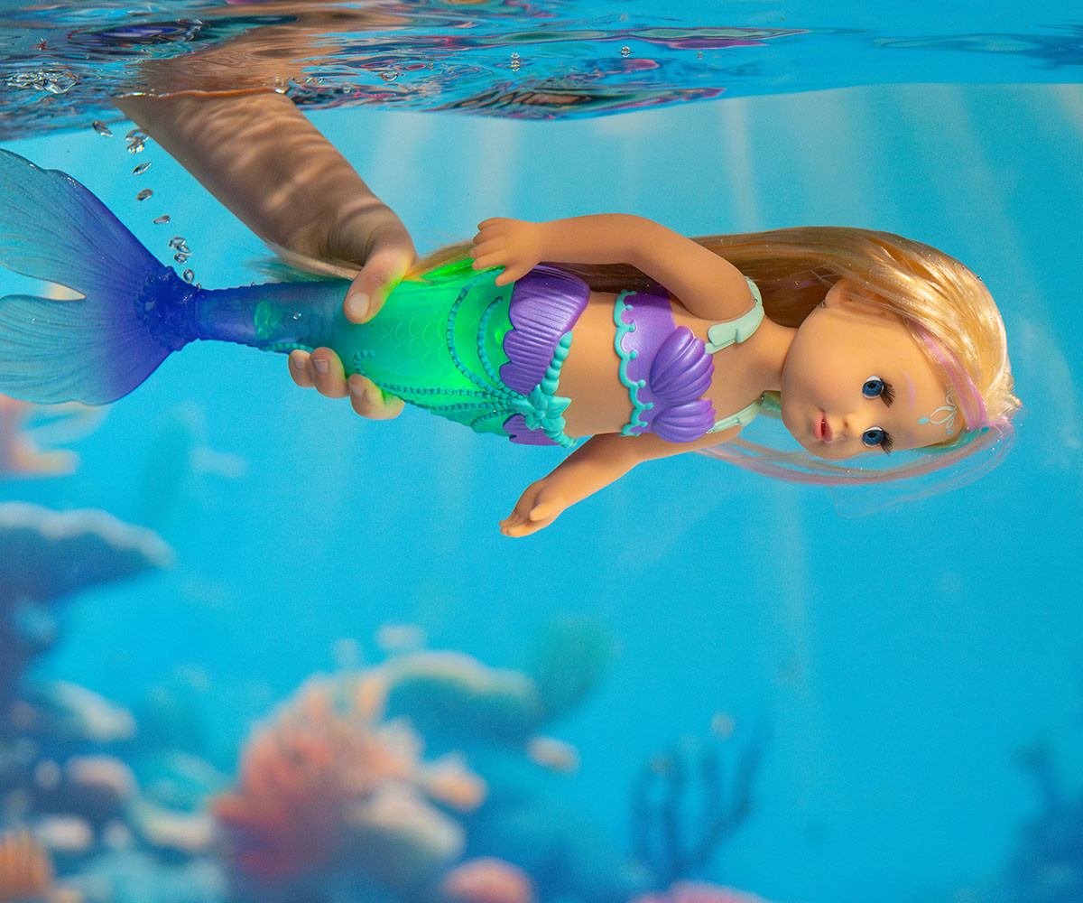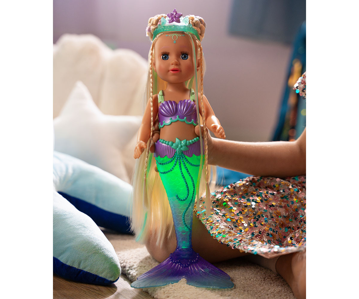 В омагьосаното подводно царство, където слънцето кара вълните да блестят, живее смела и игрива русалка. Денем тя открива коралови рифове заедно със своите морски приятели, а нощем танцува под лунните лъчи, създавайки искрящи вълни със своята магическа опашка. Сега тази приказна русалка е готова да пренесе чара на океана във вашия дом! Превърнете банята в истинско подводно приключение и оставете въображението да се понесе с BABY born Русалка с дълга коса!