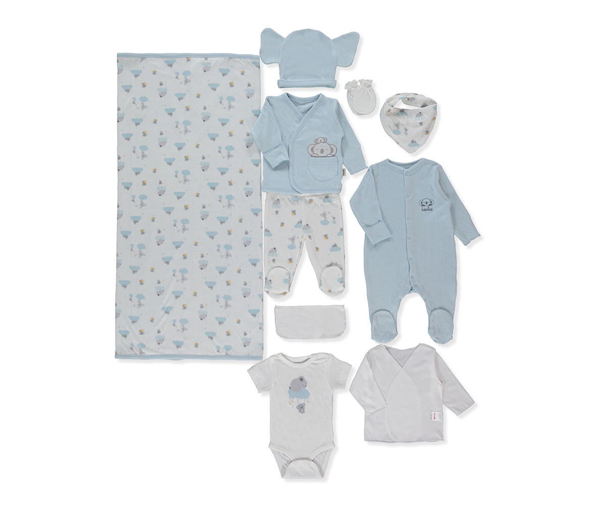 - Name: Bebetto Z1030 - Organic Supreme Double Layette Set of 10 (Organic Stars And Koalas), 0-3M/62CM, blue