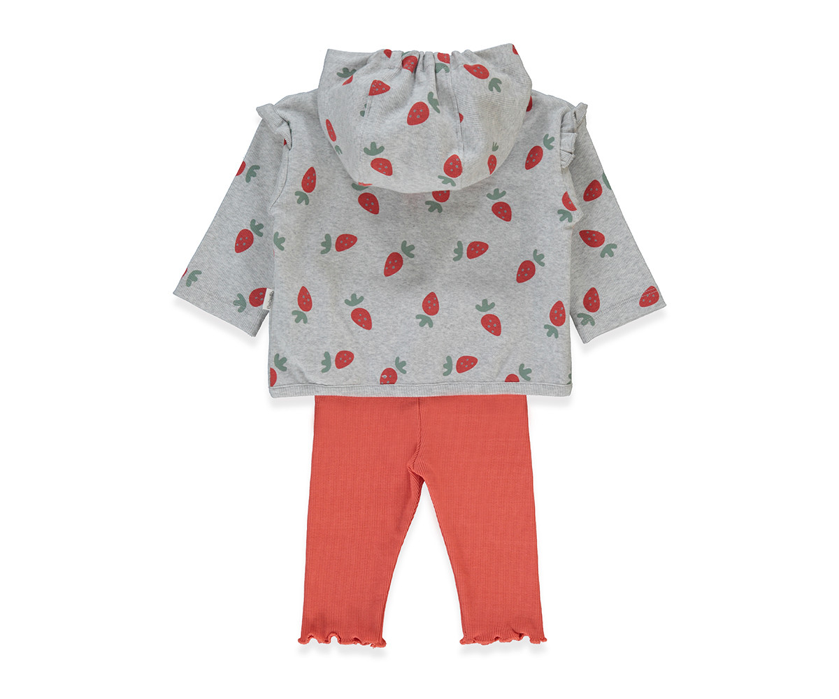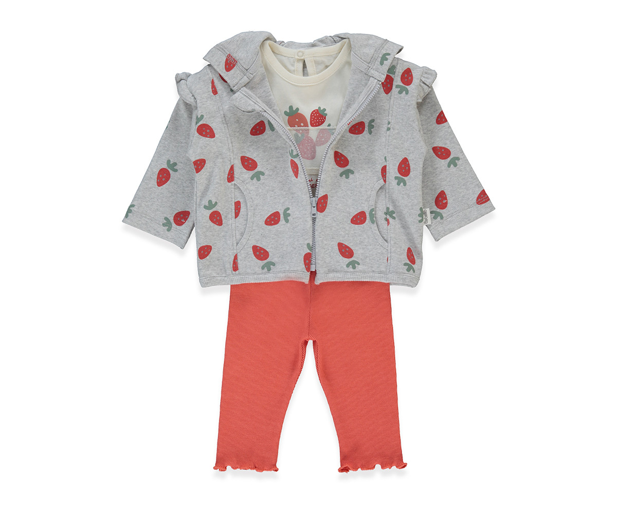 Bebetto - Комплект суитшърт с качулка и цип, тениска с къс ръкав и панталон Strawberry K5279, момиче, 3-24 м.