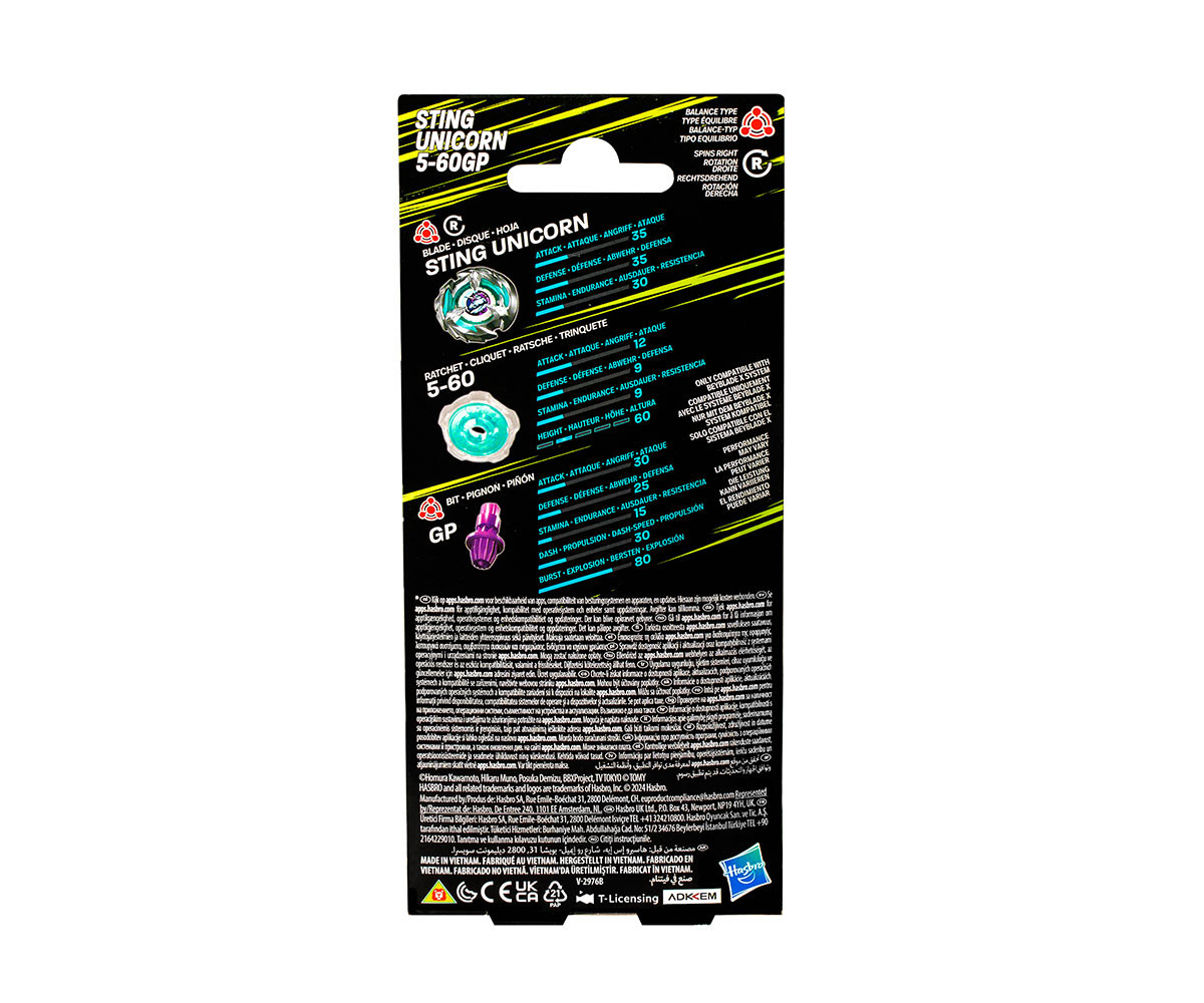 - Име: Beyblade - Booster: Единична опаковка, Sting Unicorn 5-60GP