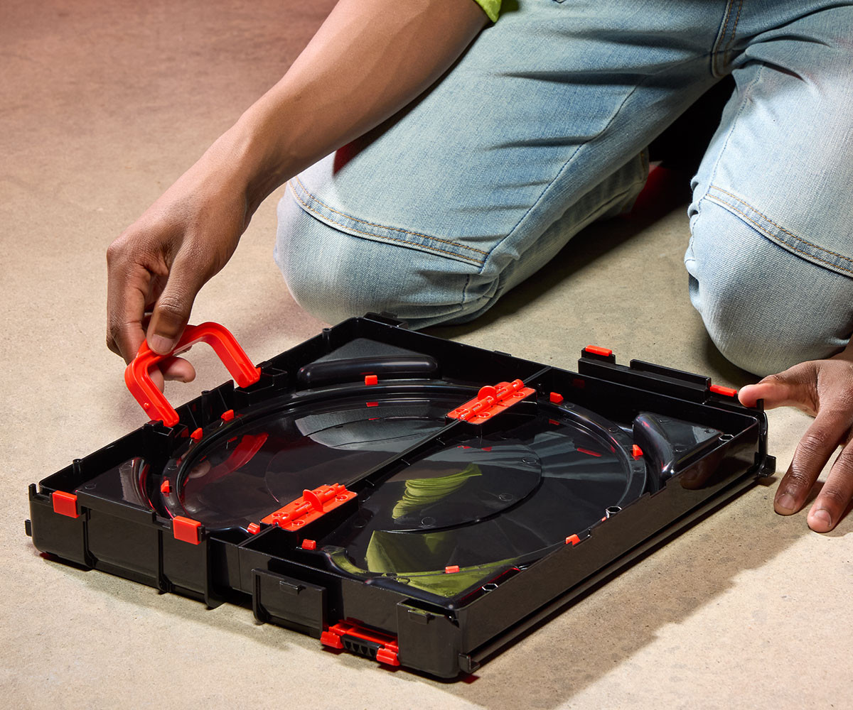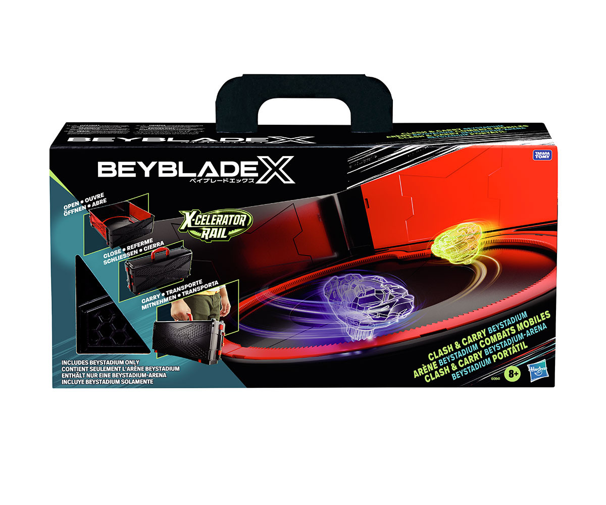 - Clash and Carry Beystadium е преносима арена за битки, която се разгъва лесно за игра и се сгъва за удобно съхранение и пренасяне. С нея можеш да се сражаваш навсякъде – у дома или в движение!