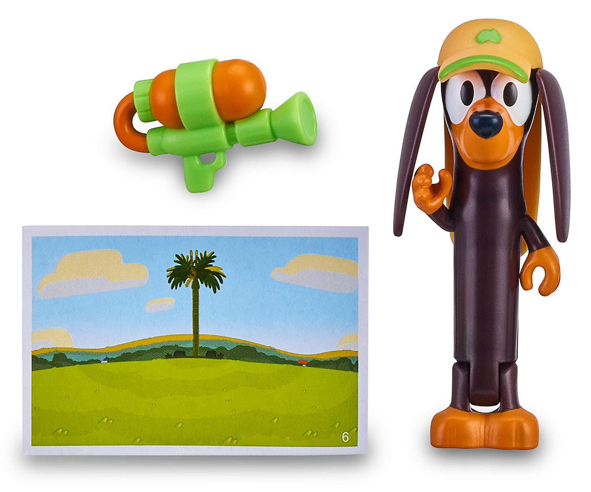 Открий света на Bluey с фигури за игра! Перфектен избор както за малки, така и за по-големи изследователи - този продукт ще зарадва всяко дете. Тази играчка предлага качество и забавление. Дайте воля на въображението и го превърнете в перфектния подарък за всяко дете! Играчките Bluey са вдъхновени от награждавания с Emmy детски анимационен сериал със същото име! Блуи е весело малко кученце, което преживява забавни и вълнуващи приключения със своята сестра Бинго и останалите членове на семейството, създавайки смешни истории с неизчерпаемото си въображение! Основното послание на сериала е, че ежедневният семеен живот може да бъде изпълнен с радост както за децата, така и за родителите, благодарение на въображението и свободата от стереотипи. Създавайте свои истории, вдъхновени от телевизионния сериал, с тези тематични комплекти! Всеки комплект включва 1 фигурка с височина 6 см и 1 аксесоар, както и карта с фон от сцени от детския сериал. Колекцията включва 8 различни модела (продават се отделно): Bluey, Grannies Bluey, Bingo, Grannies Bingo, Honey, Indy, Muffin, Snickers.