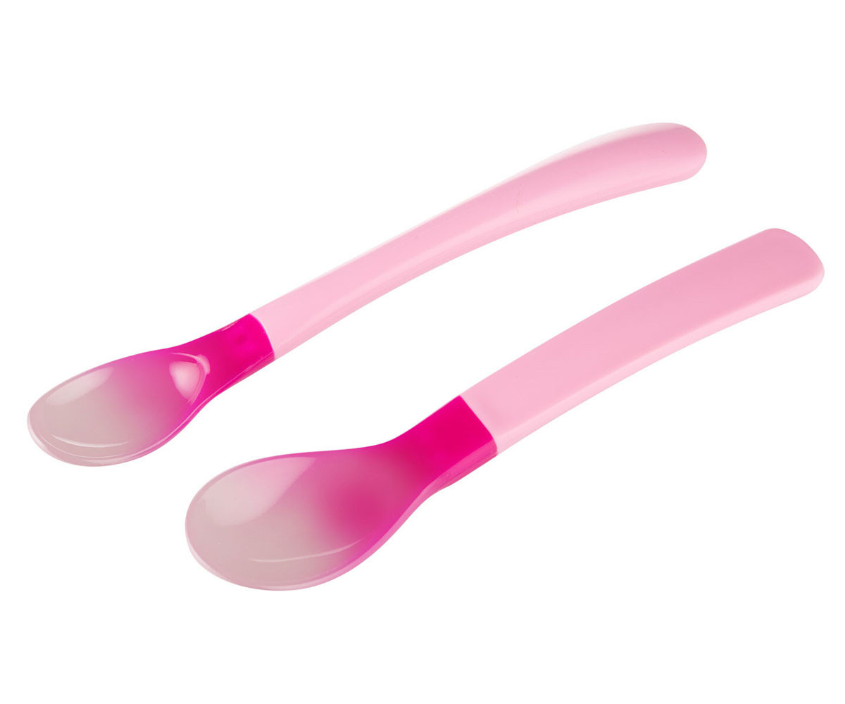 Практичен комплект лъжички, създаден специално за първите хранения на бебето. Идеални при захранване и приучване към самостоятелно хранене. Лъжичките улесняват контрола на температурата на храната -– при твърде гореща храна (около 40°C) те променят цвета си към по-светъл, за да ви предупредят.