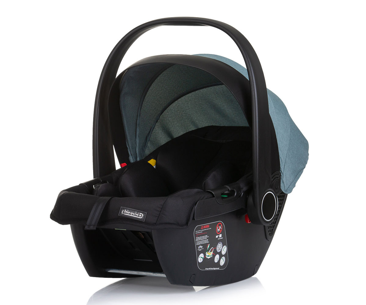 - Столчето е с мека подплатена подложка за главичката и тялото на новороденото бебе и 3-точков Y-образен обезопасителен колан с меки раменни подложки;