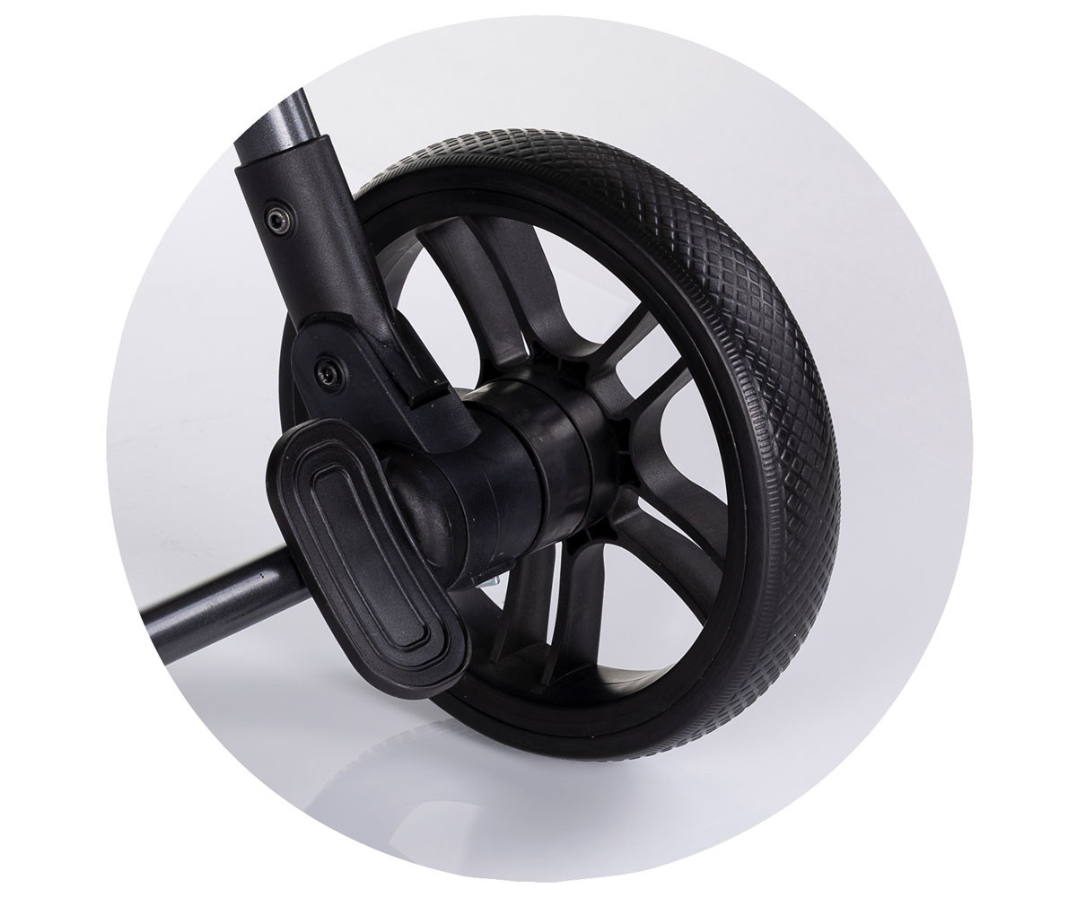 - Всички колела са с амортисьори и се свалят с едно движение;
