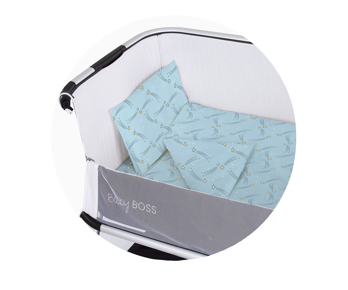 - Име: Chipolino - Спален комплект за мини кошара с падаща страница Падаща звезда, син