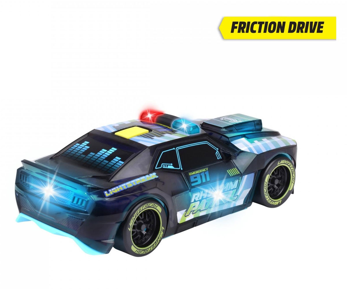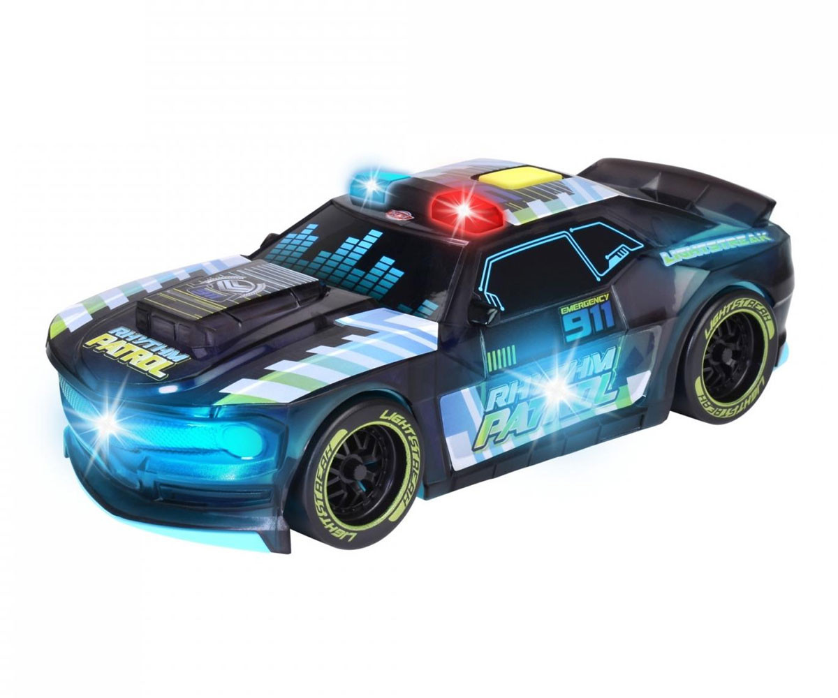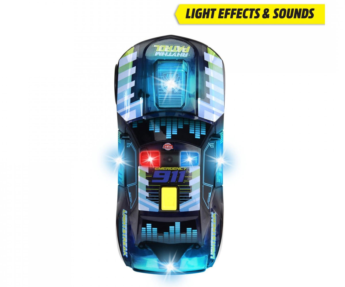 Dickie Toys – Полицейска кола Rhythm Patrol със светлинно и музикално шоу – Streets N Beatz серия, с фрикционен мотор, за деца над 3 години, 20 см. Полицейското преследване никога не е било толкова зрелищно! Изживейте динамични моменти с изключителната полицейска кола от серията Streets N Beatz на Dickie Toys! Със своите мигащи светлини, ритмична музика и мощен фрикционен мотор, тази играчка ще зарадва всяко дете и ще се превърне в централна фигура на всяко градско приключение.