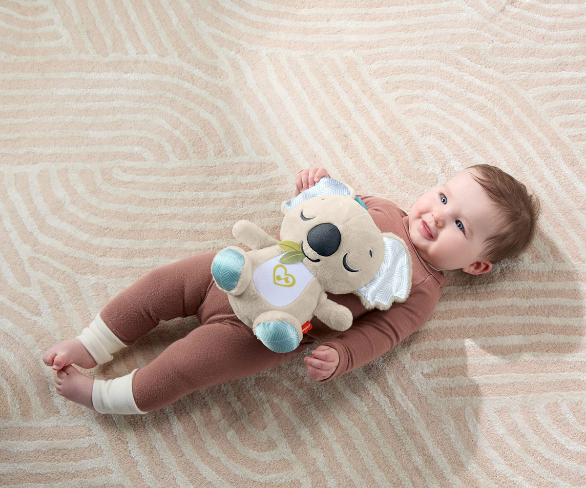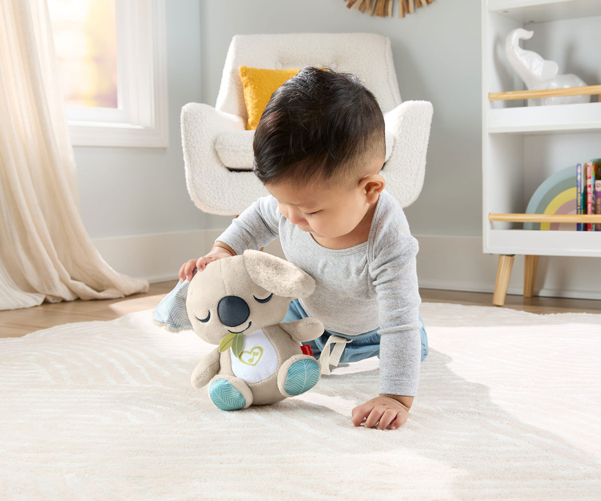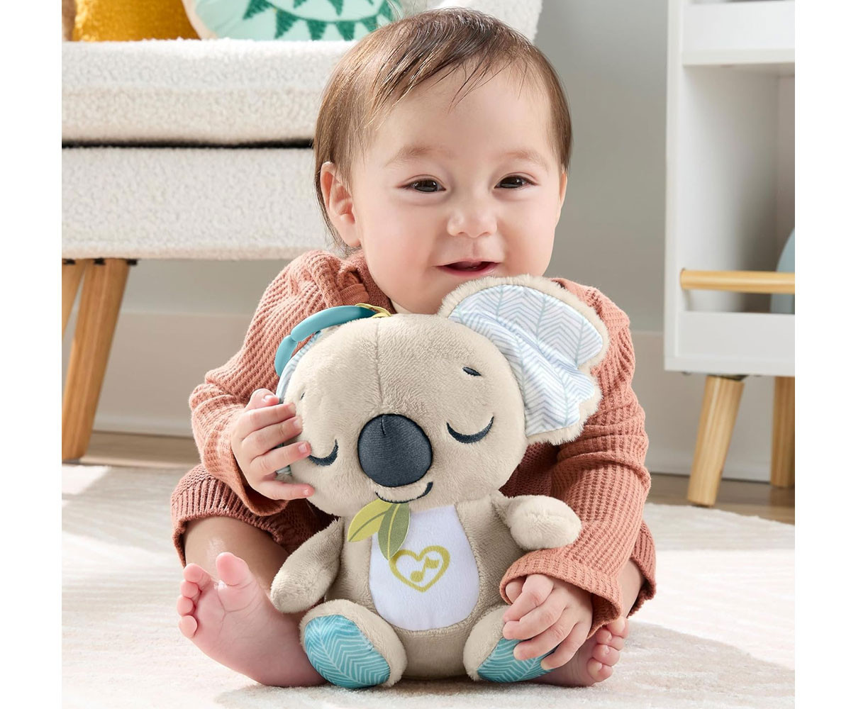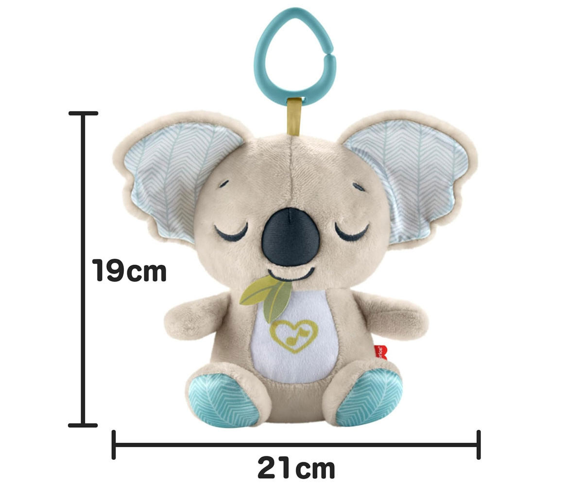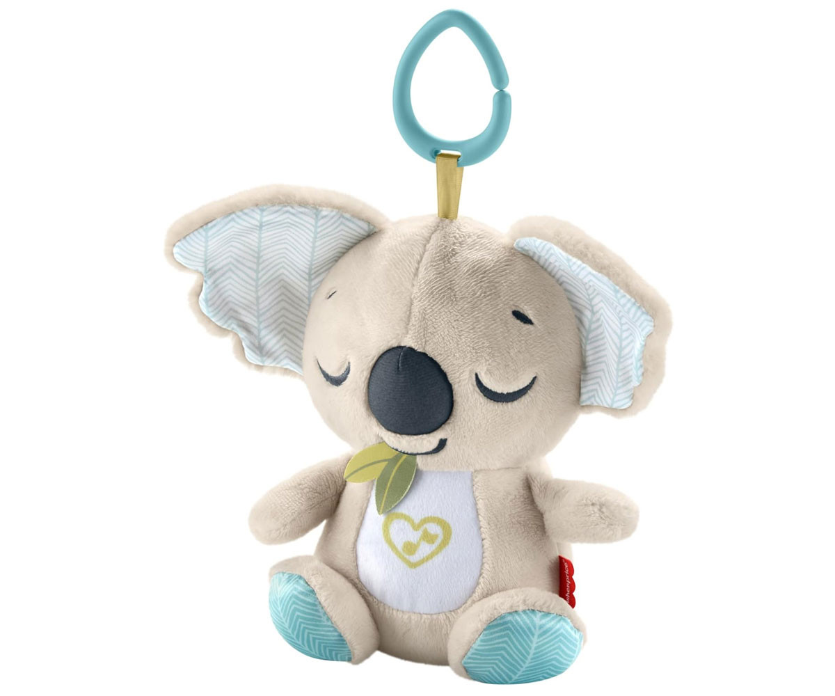 Fisher-Price – Плюшена коала с успокояващи звуци. Подарете на бебето успокояващи моменти навсякъде – у дома или по време на разходка – с преносимата плюшена коала с музика от Fisher-Price. Това сладко плюшено животинче във форма на коала възпроизвежда до 20 минути нежни мелодии, бял шум или релаксиращи звуци, които успокояват и създават чувство на сигурност за най-малките.