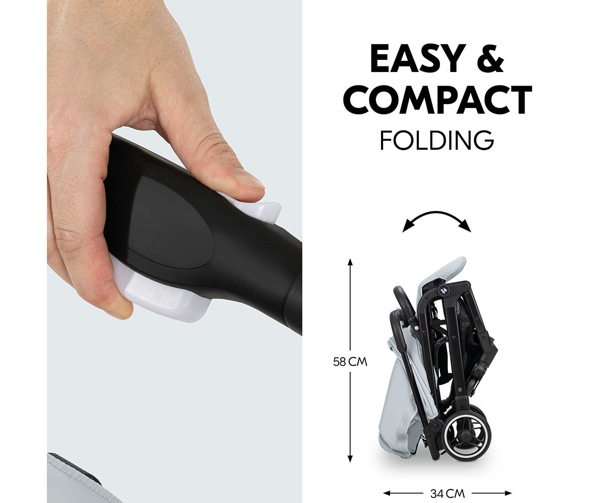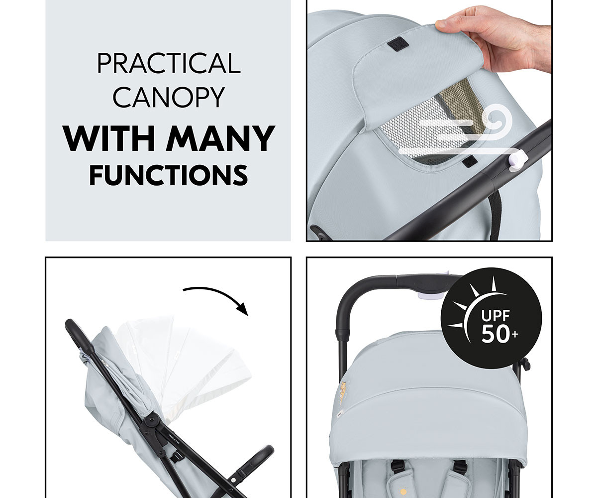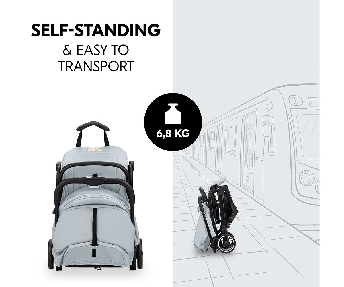 Обичате ли да пътувате с вашето бебе? Travel N Care е вашият идеален спътник. Компактната количка hauck е лека, стабилна и подходяща за деца с тегло до 25 кг благодарение на алуминиевата си рамка. В автобус, влак или самолет – можете да сгънете Travel N Care бързо и лесно с една ръка. Когато детето ви предпочита да ходи, можете удобно да носите количката за подплатената презрамка. Сгъната, Travel N Care стои сама и стабилна. Благодарение на компактния й дизайн и самозатварящата се транспортна ключалка, можете да приберете детската количка по безопасен и пестящ място начин. Без значение къде отивате – окачването с амортисьори предлага на вашето дете удобно возене. Маневрирането през търговския център също е детска игра благодарение на въртящите се предни колела. Удобната седалка осигурява много място за детето. За спане облегалката застава в легнало положение с една ръка и връщане към позицията на седене е също толкова лесно. По време на разходките навън вашето бебе е защитено на сянка, осигурена от големия 3 степенен сенник с UPF 50+ защита. Свежият въздух идва през прозорчето, което позволява зрителен контакт с васшето бебе. Когато детето ви разлее храна или напитка, можете да свалите калъфа и да го изперете на 30 градуса в пералня. Вашата Travel N Care ще бъде готова за следващото ви пътуване за нула време. Независимо дали е кукла или тяхното любимо мече за гушкане – вие предпочитате да имате всичко под ръка? Голямате и лесна за достъп кошница за принадлежности и пазар може да носи всички важни аксесоари или покупки. С допълнителните аксесоари като дъждобран (можете да го видите тук) и сенник (можете да го видите тук) за допълнително защита, можете да адаптирате своя Travel N Care още по-добре за нуждите на вашето дете.