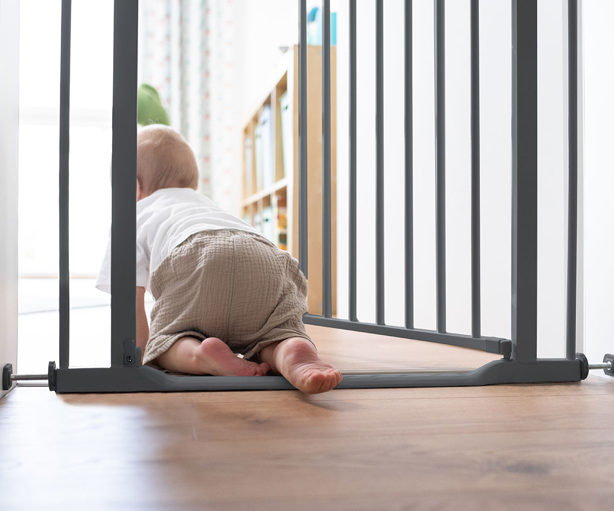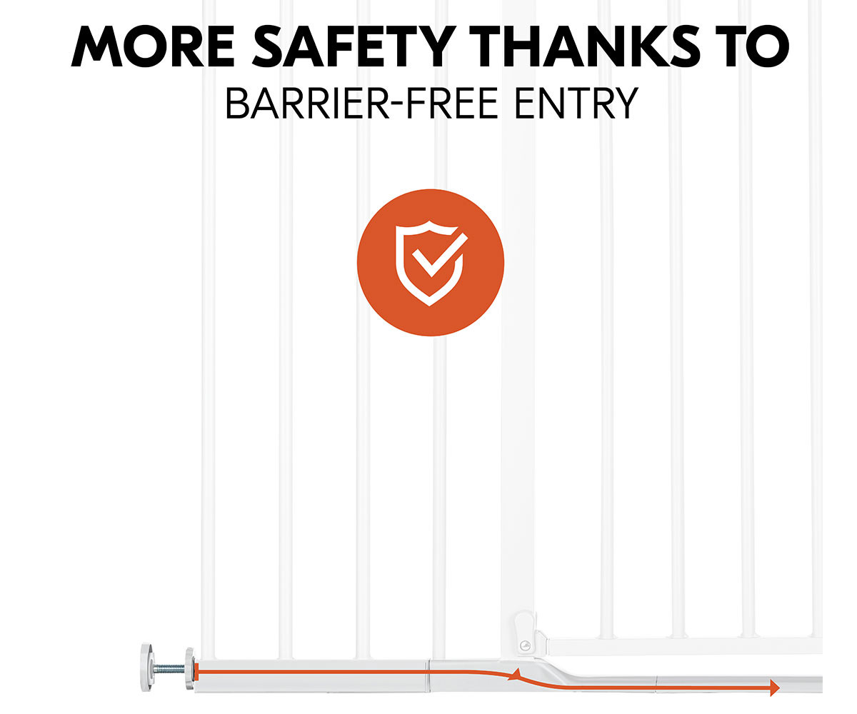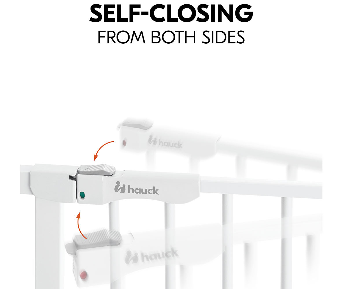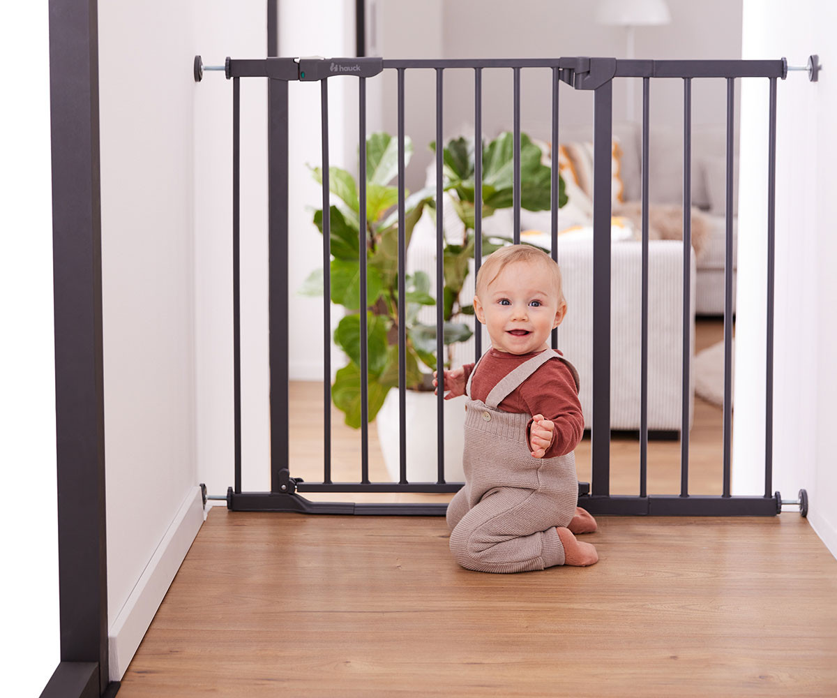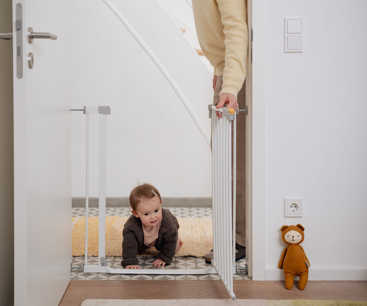Щом детето ви започне да пълзи, най-надеждният ви спътник ще бъде детската преграда за безопасност. Комплектът Clear Step Autoclose 2 предлага изключително нисък вход, намалявайки риска от спъване както за малки, така и за възрастни хора. Благодарение на магнитната ключалка, вратата се затваря автоматично от двете страни на отваряне. Индикаторът с два етапа осигурява визуална безопасност с един поглед. Ядене във фурната? Отворена входна врата? Някои ситуации изискват преградата да се отваря само от едната страна. Като използвате защитната ключалка в долната част, можете да регулирате вратата според вашите индивидуални нужди. Независимо дали у дома, при баба и дядо или на почивка – тази стабилна преграда е много лесна за инсталиране с помощта на регулиращи винтове. Също така, премахването на преградата е лесно и не оставя следи по стените ви. Комплектът Clear Step Autoclose 2, включващ 21 см удължение, може да се използва не само за отвори с размери 96-101 см, но и за по-големи отвори до 122 см, като я разширите с отделно предлагащите се удължения от 9 см и 21 см (можете да ги закупите тук). С помощта на предлаганите отделно Y-аксесоари можете да инсталирате вътрешната врата и на стълбища с кръгли парапети.