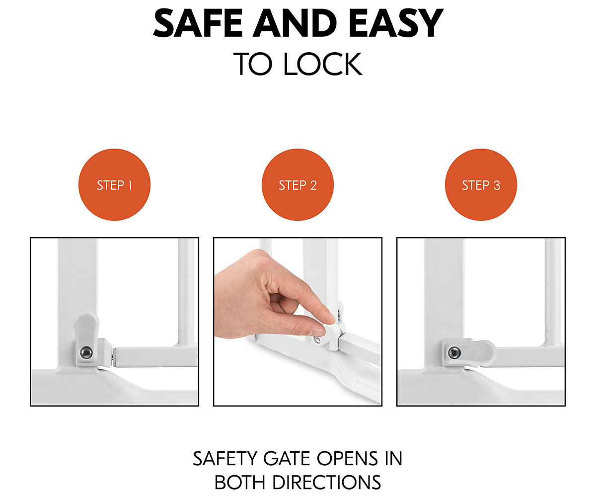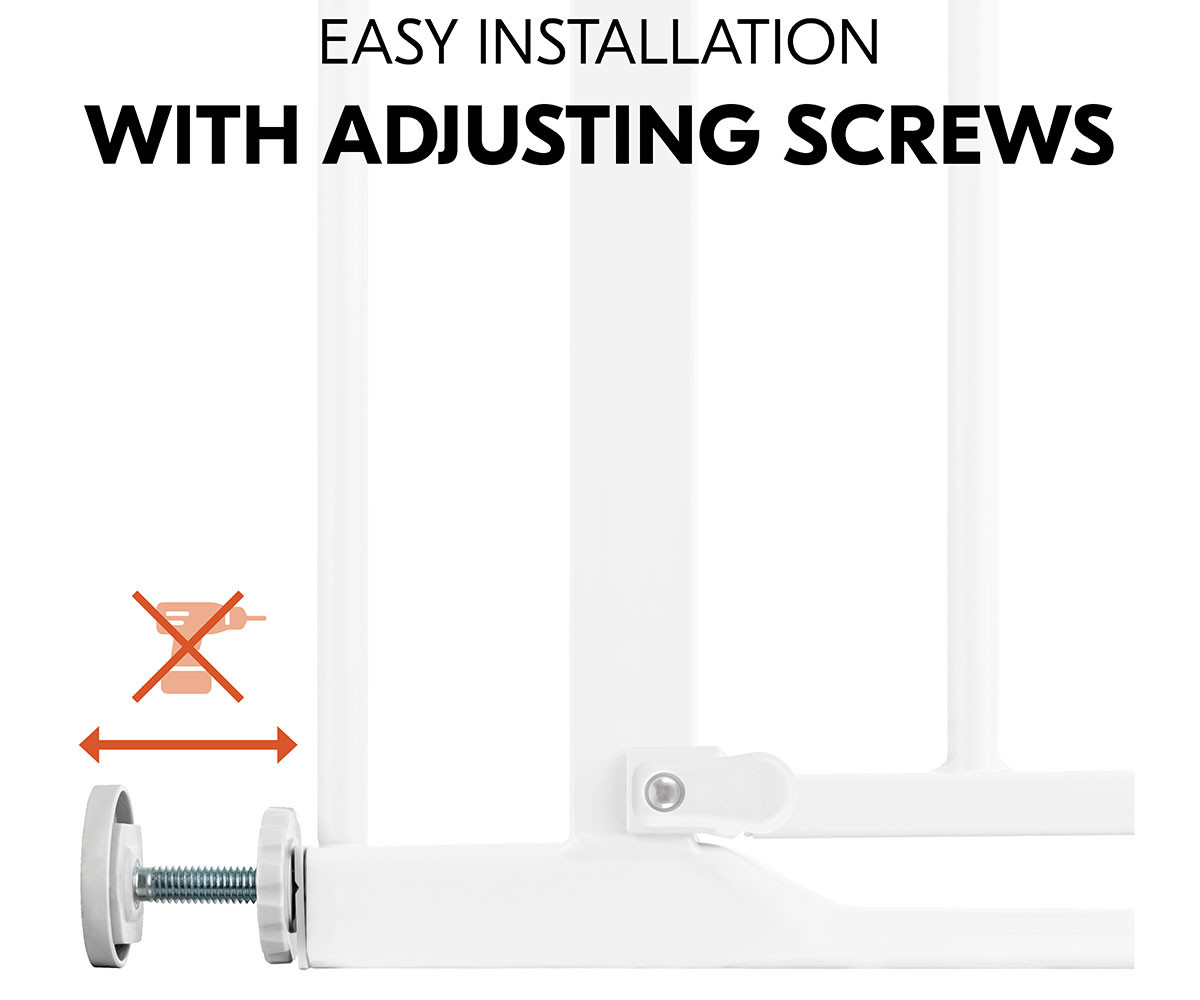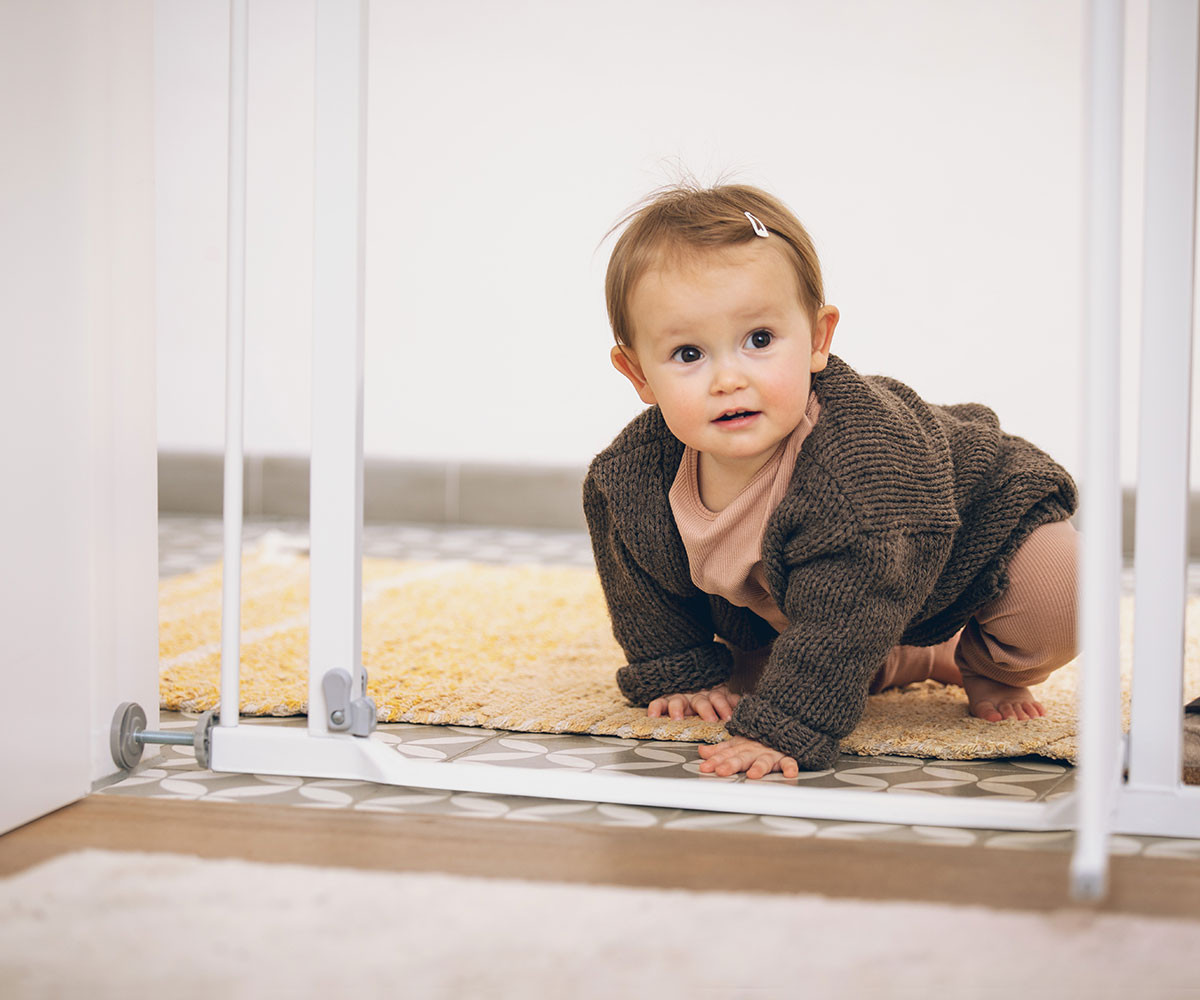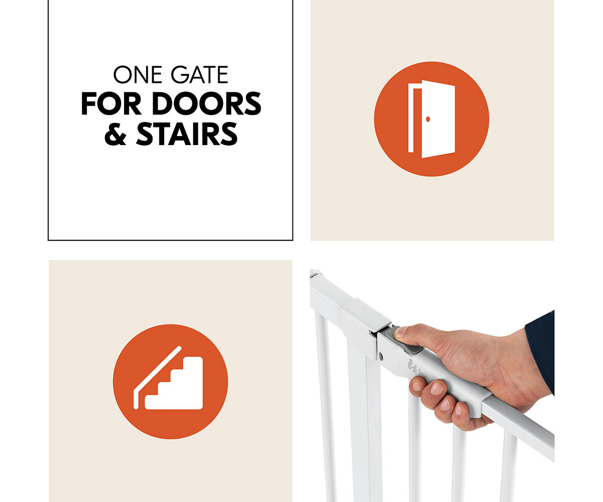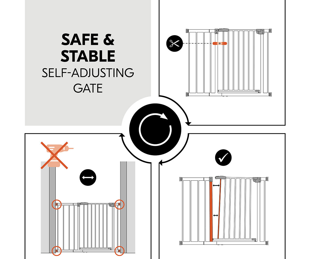 Щом детето ви започне да пълзи, най-надеждният ви спътник ще бъде детската преграда за безопасност. Комплектът Clear Step Autoclose 2 предлага изключително нисък вход, намалявайки риска от спъване както за малки, така и за възрастни хора. Благодарение на магнитната ключалка, вратата се затваря автоматично от двете страни на отваряне. Индикаторът с два етапа осигурява визуална безопасност с един поглед. Ядене във фурната? Отворена входна врата? Някои ситуации изискват преградата да се отваря само от едната страна. Като използвате защитната ключалка в долната част, можете да регулирате вратата според вашите индивидуални нужди. Независимо дали у дома, при баба и дядо или на почивка – тази стабилна преграда е много лесна за инсталиране с помощта на регулиращи винтове. Също така, премахването на преградата е лесно и не оставя следи по стените ви. Комплектът Clear Step Autoclose 2, включващ 21 см удължение, може да се използва не само за отвори с размери 96-101 см, но и за по-големи отвори до 122 см, като я разширите с отделно предлагащите се удължения от 9 см и 21 см (можете да ги закупите тук). С помощта на предлаганите отделно Y-аксесоари можете да инсталирате вътрешната врата и на стълбища с кръгли парапети.