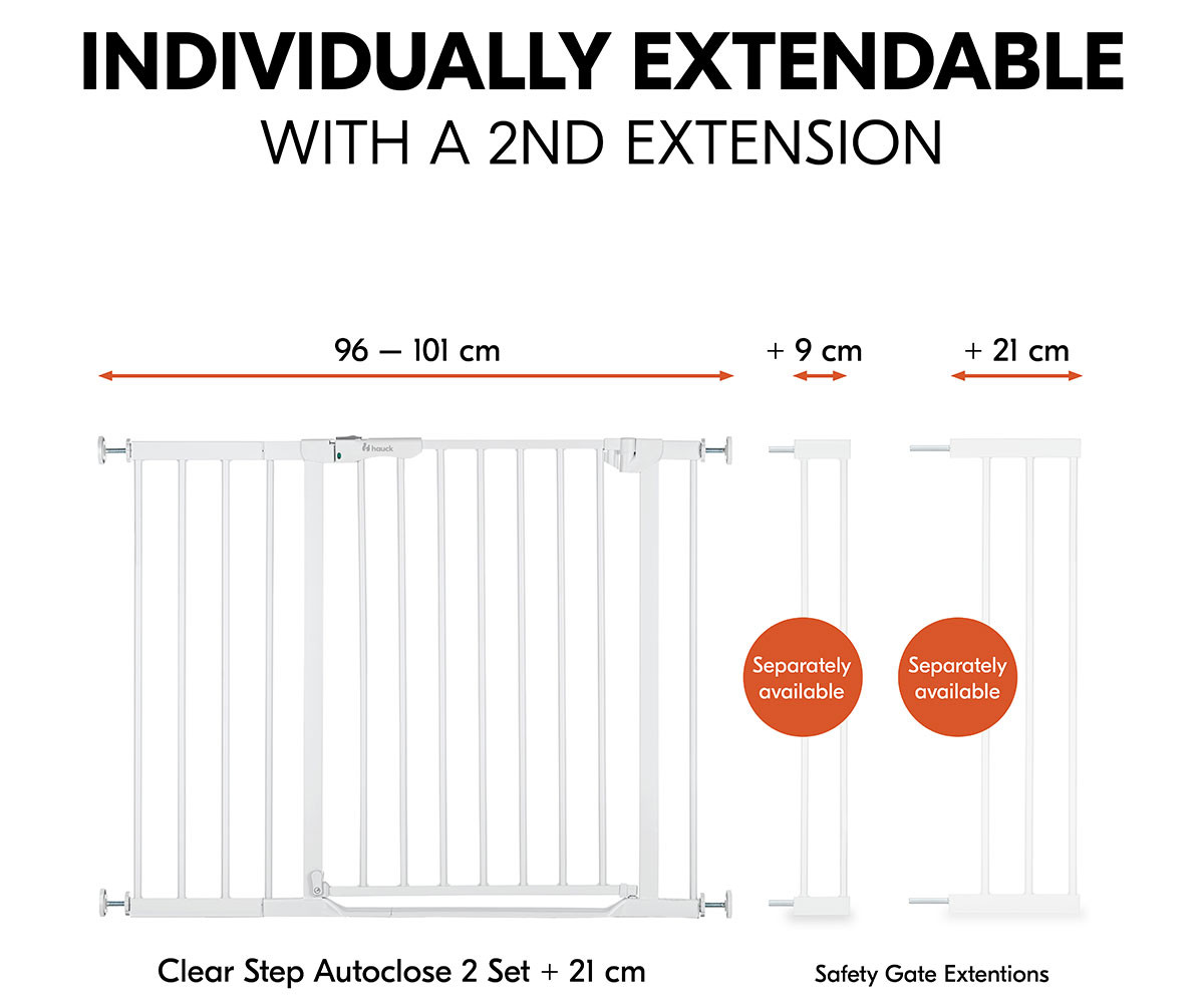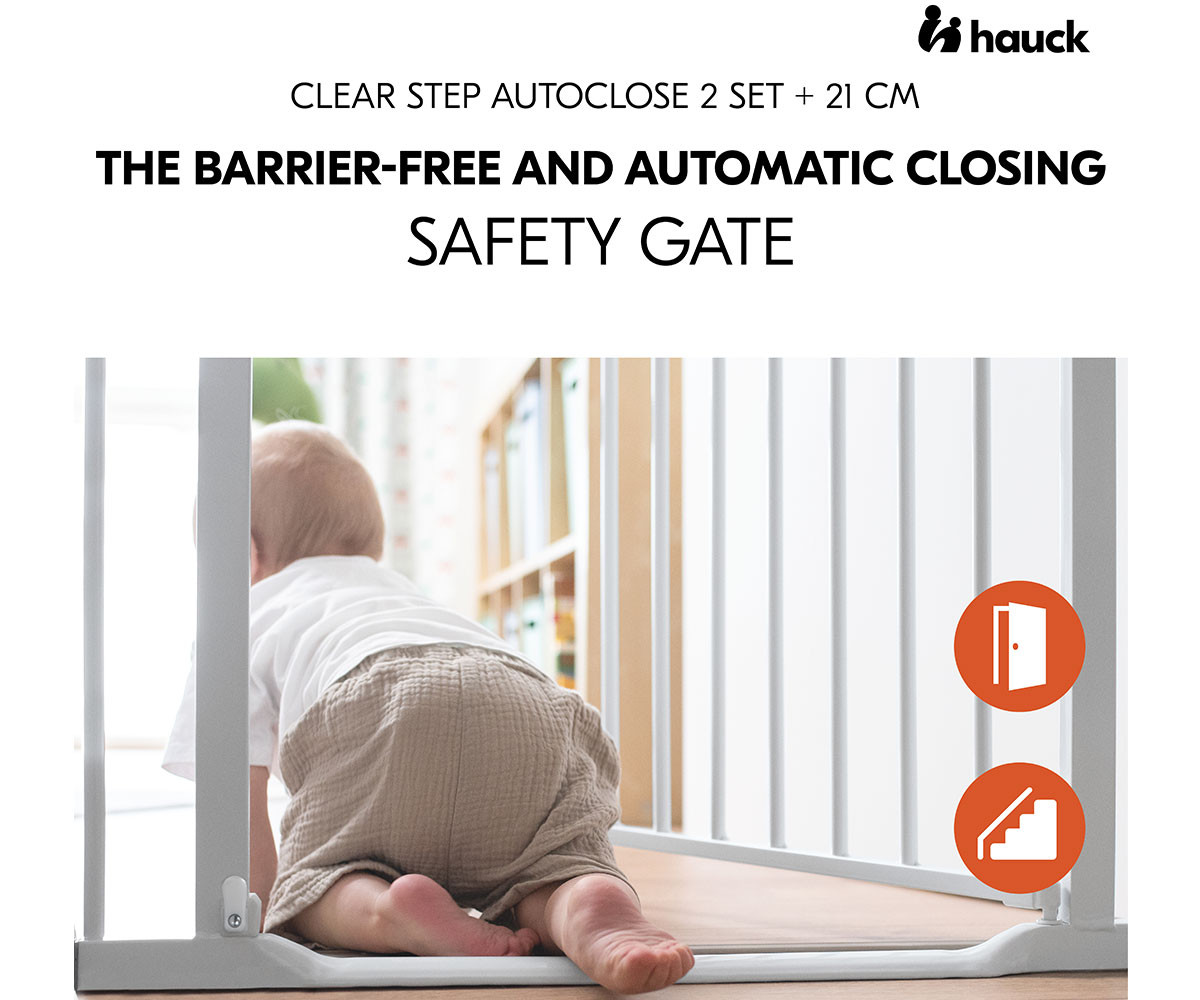 Hauck - Преграда за врата и стълби Clear Step Autoclose 2 Set с удължител 21см, бяла