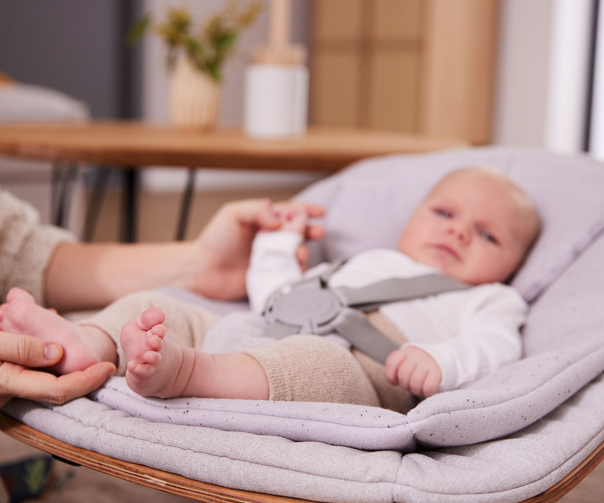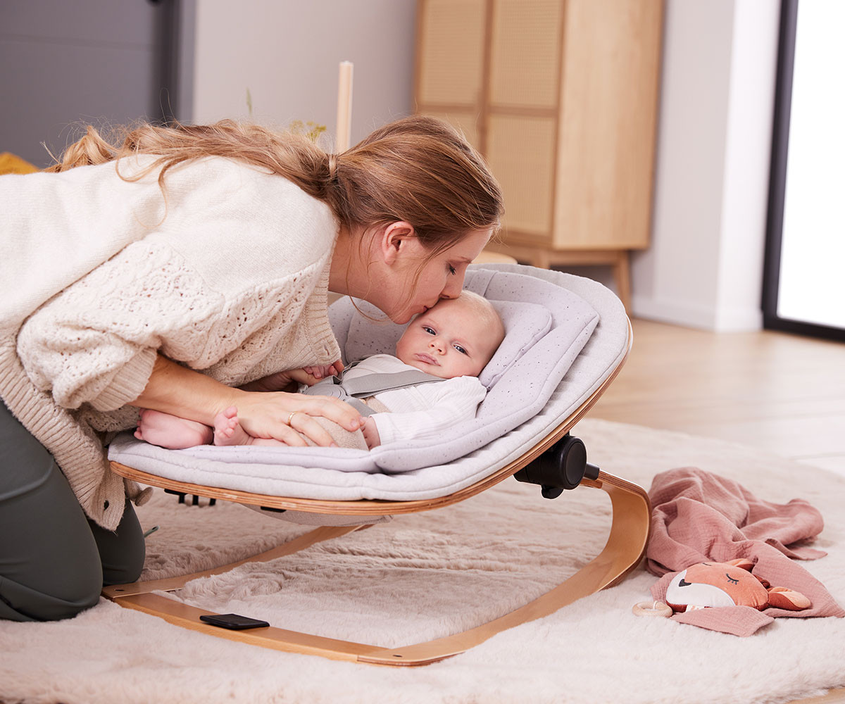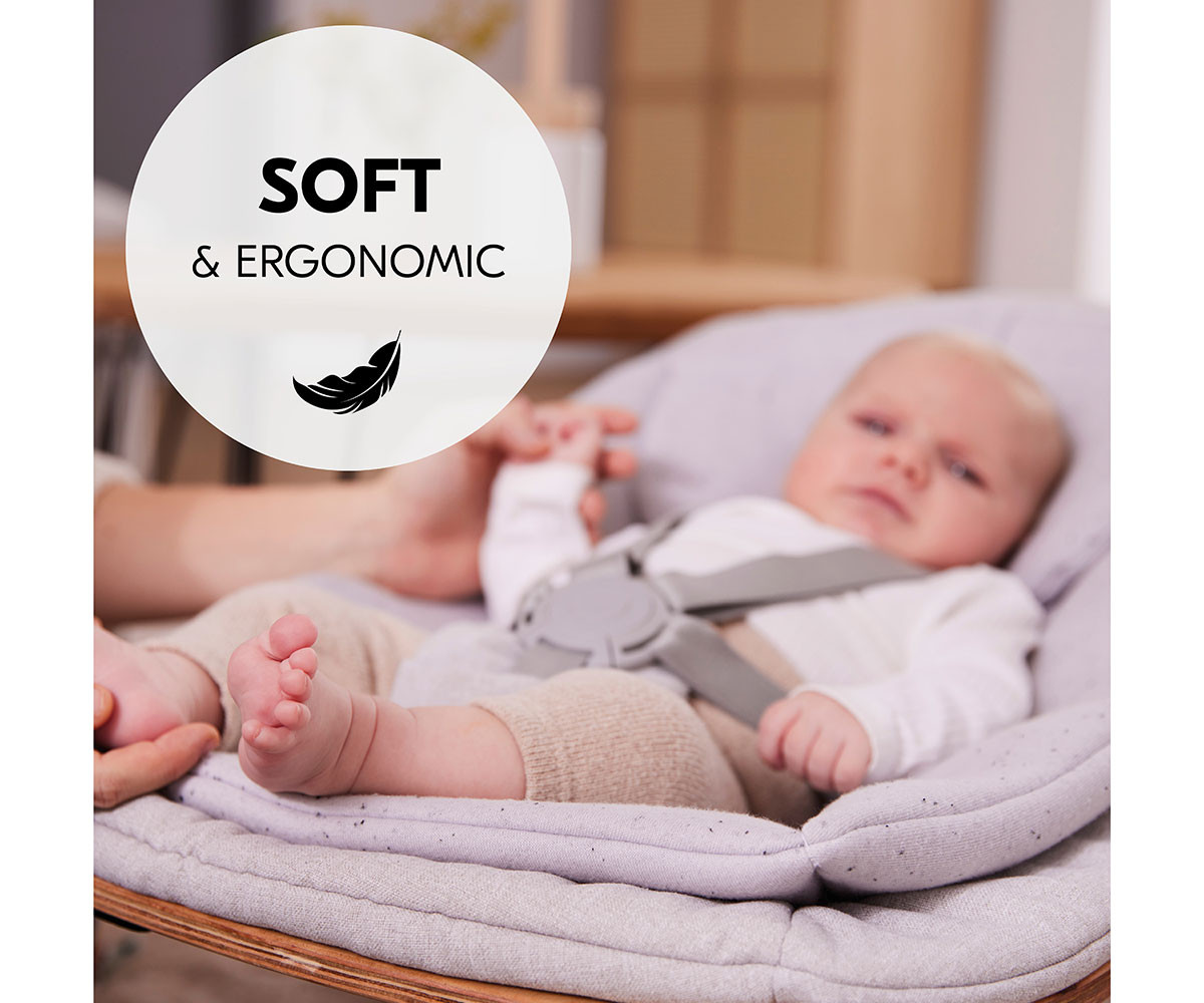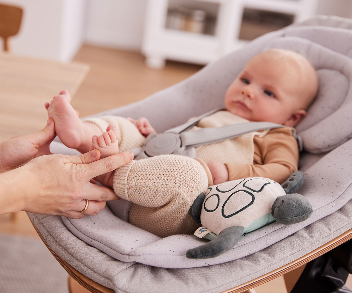 Люлеенето насърчава развитието! Вашето бебе тренира баланс и моторни умения. Те могат да се люлеят или да почиват с Highchair Bouncer Eco, като издържа натоварване до 15 кг в режим на люлеене и до 9 кг като е прикачено към столче за хранене. Бърза промяна на позицията? Поставете лесно регулираната наклонена позиция на Highchair Bouncer Eco в легнало положение, когато бебето ви е уморено и наполовина изправено, когато иска да играе. Главата на бебето има нужда от много поддръжка. Highchair Bouncer Eco има специално подложка за главата. Това осигурява перфектна защита.