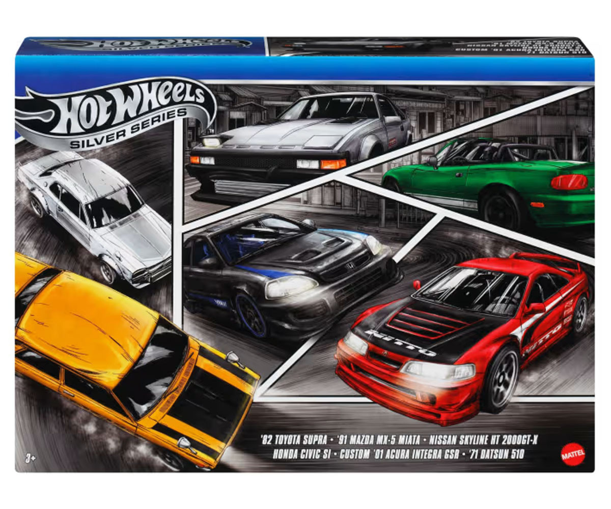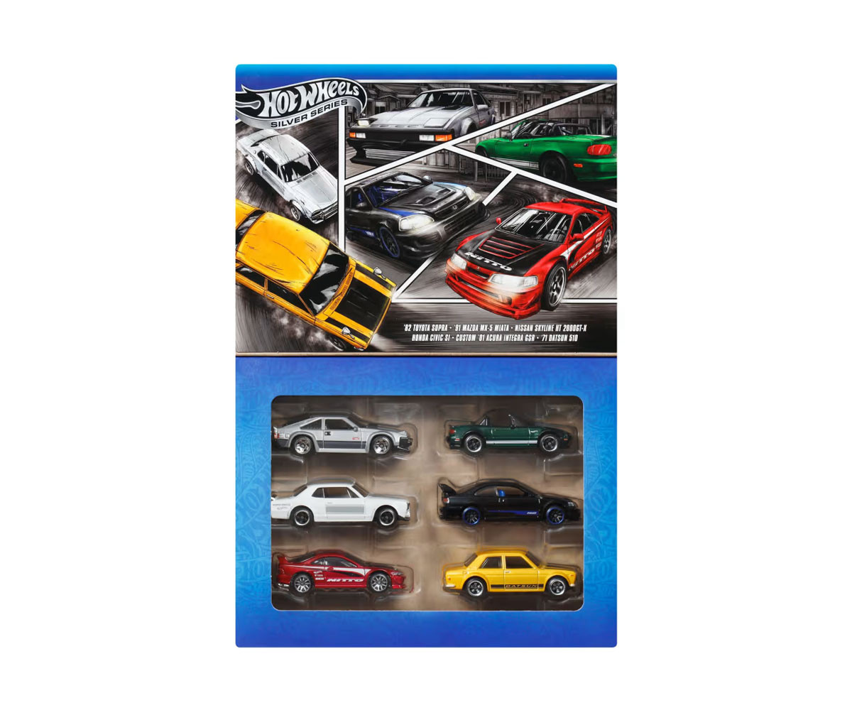 Комплектът Hot Wheels Streets of Japan Multipack ще даде пълна газ на всяка колекция от коли! Включва шест коли в мащаб 1:64, които представят модерни и класически японски автомобили изработени изцяло от метал за максимална здравина и стил. Комплектът съдържа: 82 Toyota Supra, 91 Mazda MX-5 Miata, Nissan Skyline HT 200GT-X, Honda Civic SI, Custom 01 Acura Integra GSR и 71 Datsun 510. Събери и останалите тематични комплекти – Легенди (можете да ги закупите тук) и Европа (можете да ги закупите тук) – и стани шампион на колекционерите!