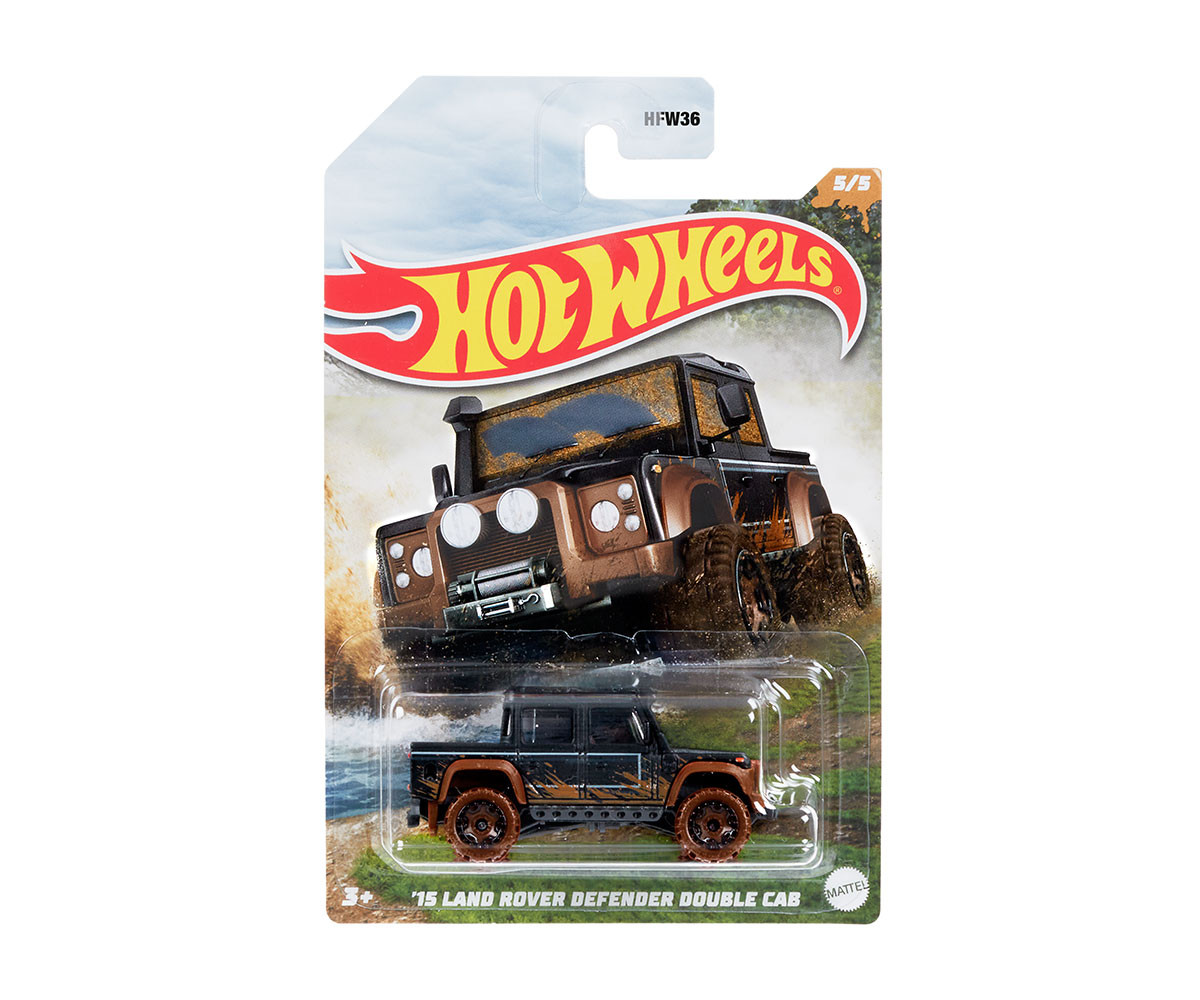 Колекцията офроуд автомобили Hot Wheels® включва разнообразни повдигнати автомобили 4x4, които са направени за всякакви терени – и колкото по-кални, толкова по-добре. Създавайте епични истории, включващи официално лицензирани превозни средства, като Mercedes-Benz Unimog 1300, Jeepster Commando '67, Olds™ 442™ W-30, Toyota Land Cruiser или '15 Land Rover Defender Double Cab (всяко се продава отделно). Тези реплики на колички в мащаб 1:64 имат кафяви, лети гуми и графики, наподобяващи кал за още повече реализъм – децата над 3 години и колекционерите на колички ще искат да ги съберат всички. Всеки продукт се продава отделно според наличностите. Цветовете и декорациите може да се различават.