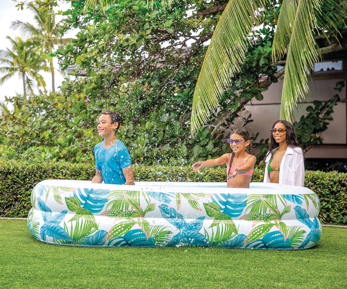 Съберете семейството си, за да победите жегата и да се насладите на освежаващо потапяне в този стилен басейн с тропическа тематика. Успокояващата флорална шарка отстрани е приятно допълнение към всяко градинско пространство.