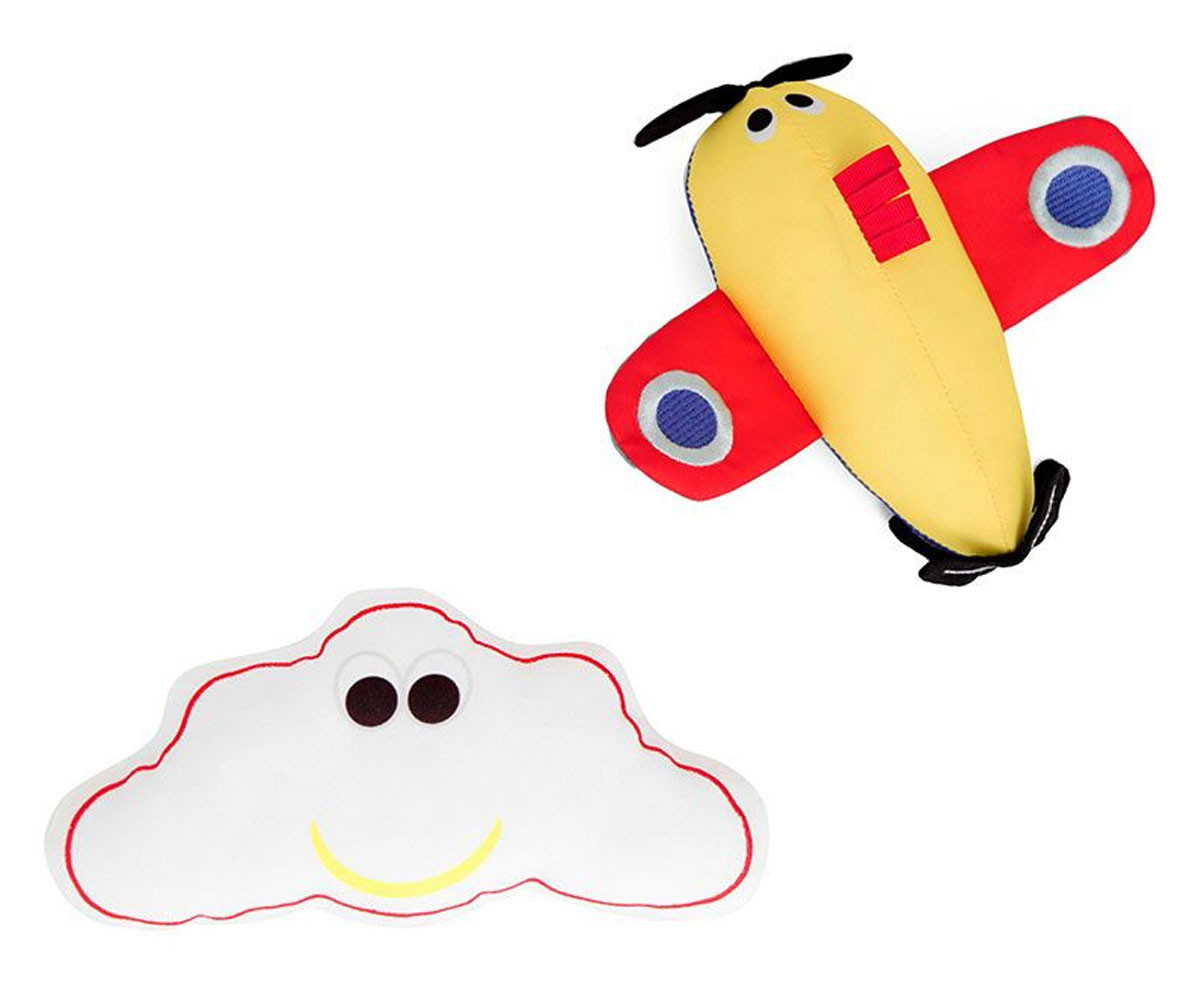 - Две плюшени играчки се прикрепят към игрива природна сцена за визуална стимулация;
