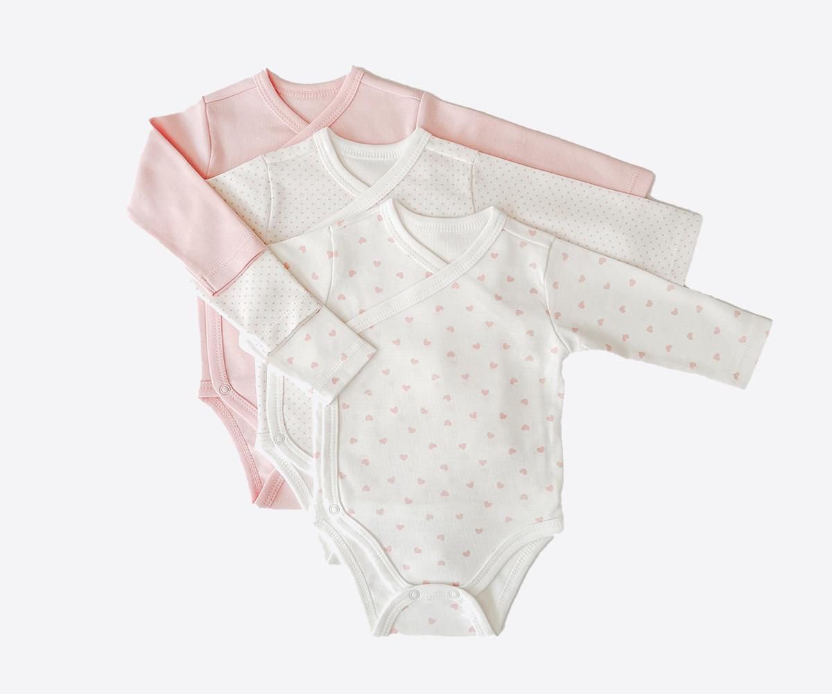 Kitikate - Боди с дълъг ръкав с прихлупване S43521, 3 бр., момиче, 50-62 см, 0-3 м.