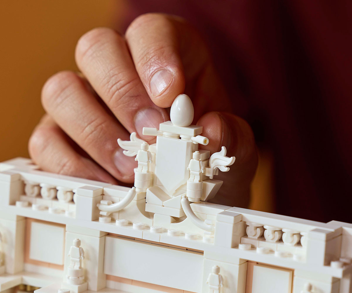 Дайте воля на креативността си с фонтана ди Треви в Рим, Италия. Потопете се в детайлите, докато създавате модела с елементи в топли нюанси на бяло, бледокафяво и розово, както и преливащи нюанси на синьо, с които да придадете дълбочина на водата.Постройте впечатляващата фасада на двореца „Поли“, увенчана с папски герб. Добавете различните скулптури, пресъздадени под формата на минифигури, и се насладете на великолепието на тази емблематична забележителност.