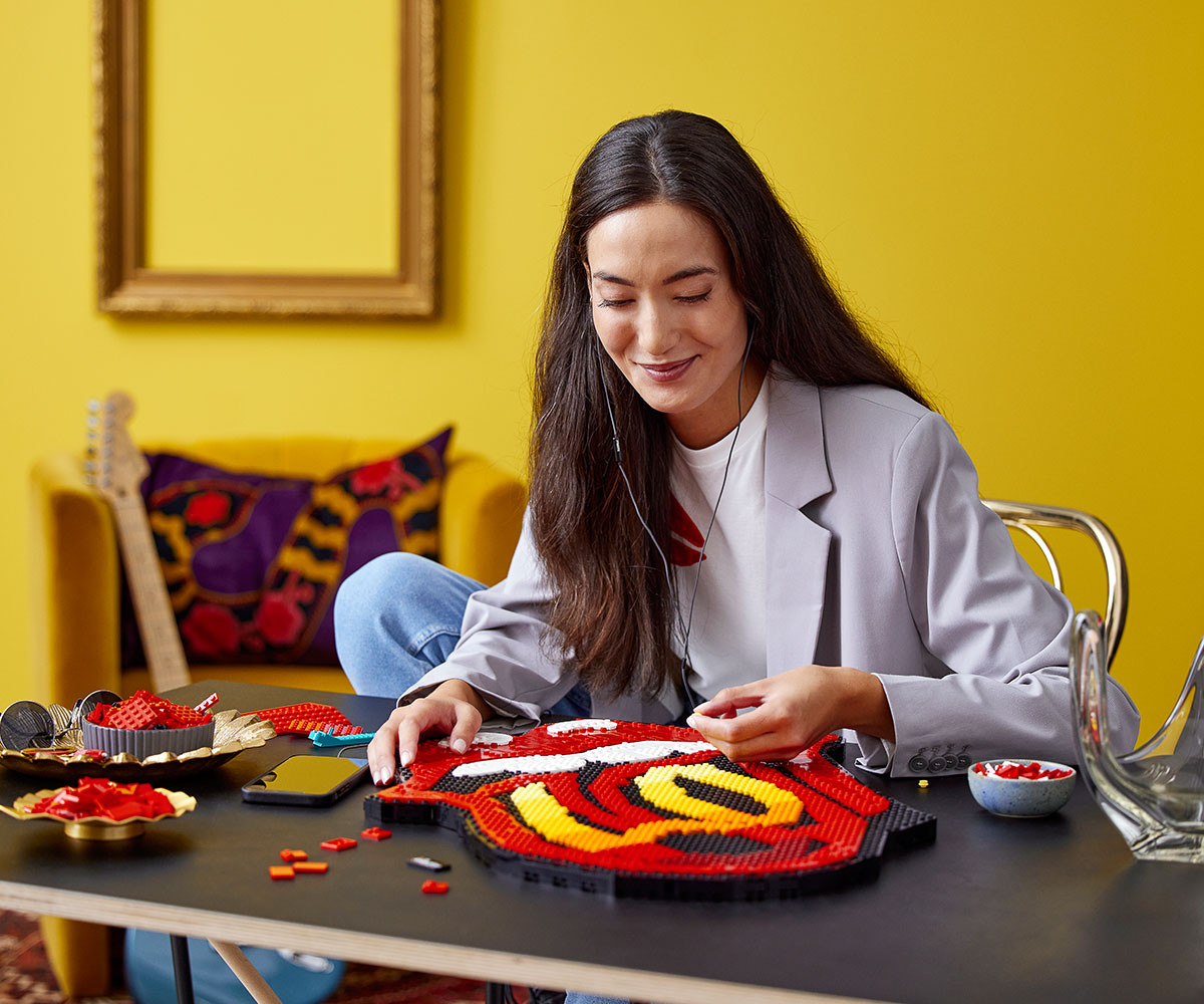 Пейте „Ruby Tuesday“ с The Rolling Stones, докато се фокусирате върху смисленото творчество, насладете се на включения саундтрак и постройте експонат от LEGO® Art.