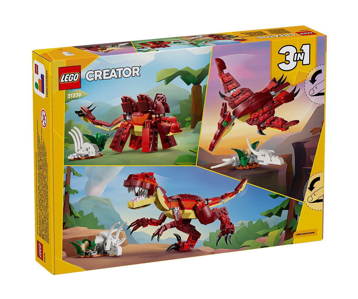 Този строителен комплект LEGO® Creator „3 в 1“ Свиреп динозавър (31379) дава на децата над 8 години всичко, от което се нуждаят, за да се насладят на безкрайни праисторически приключения. Тази страхотна и детайлна играчка с динозаври предлага 3 различни възможности за построяване с един и същ комплект тухлички. Момчетата и момичетата могат да изберат да построят играчка велоцираптор с подвижна челюст, глава, ръце, крака и опашка. След това той може да бъде превърнат в играчка стегозавър която може да движи врата, главата и краката си, или птерозавър с подвижни крила, глава и крака. Всеки модел се предлага и с череп и гръден кош, яйца на динозаври и растение. След игра всеки модел може да бъде изложен на показ като динозавърска украса на стаята, която момчетата и момичетата да споделят със семейството си. Този комплект LEGO Creator „3 в 1“ ще вдъхнови въображението на децата и е страхотен динозавърски подарък. А с приложението LEGO Builder децата могат да се насладят на страхотно строително приключение. Те могат да мащабират и завъртат комплектите си с помощта на 3D инструкции и да проследяват напредъка си. Моделите не могат да бъдат построени едновременно. Върнете се в праисторически времена за приключения с 3 различни свирепи динозаври! Отидете на лов със страшен велоцираптор до череп и гръден кош на динозавър. След това го превърнете в стегозавър, който може да движи врата, главата и краката си, или в птерозавър, за да лети през небето. Какво ще построите? Изборът е ваш с този невероятен комплект за игра „3 в 1“.