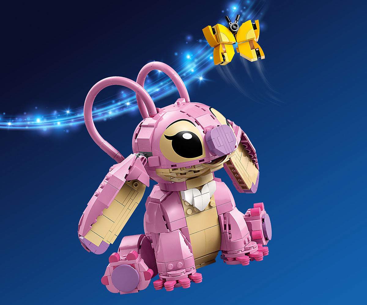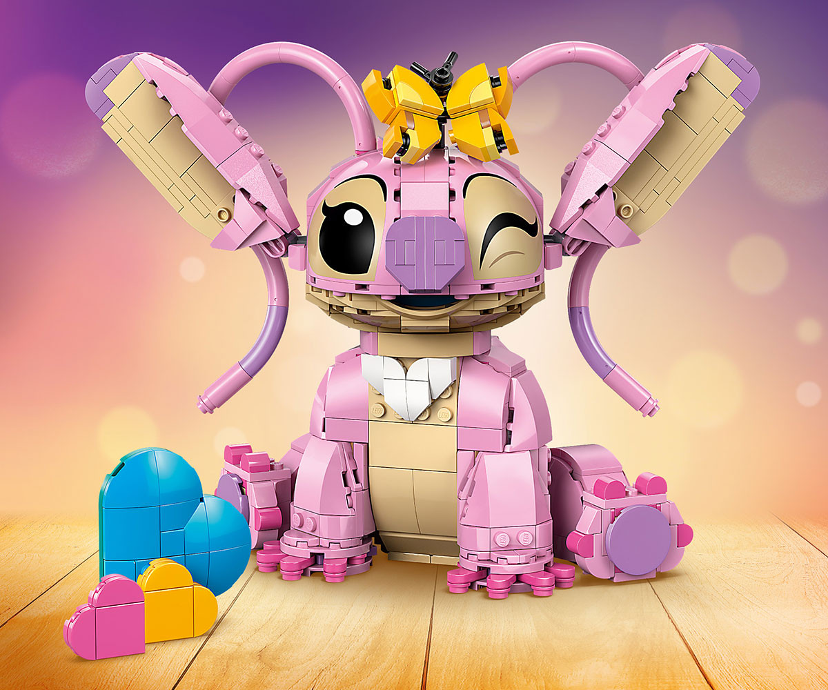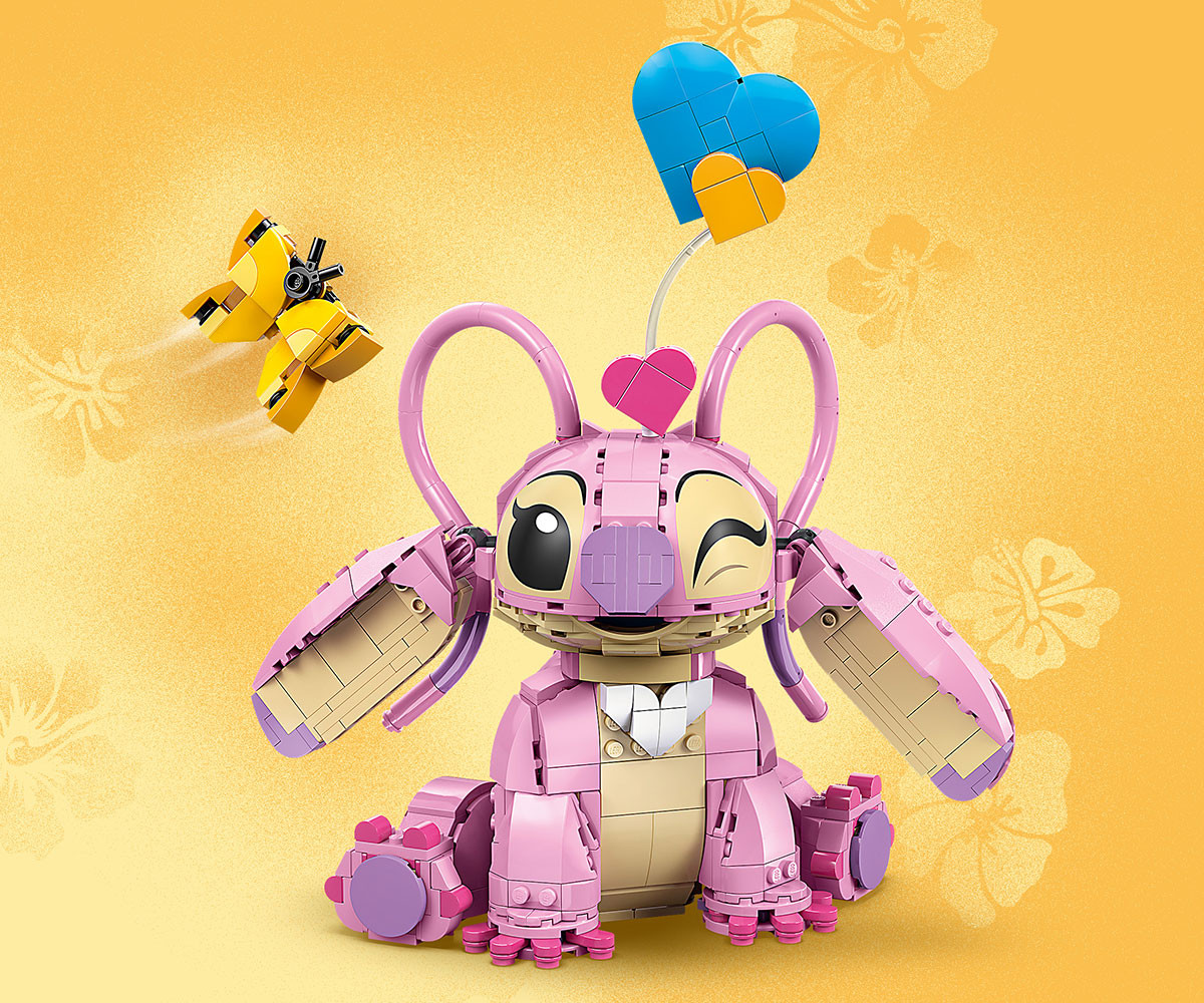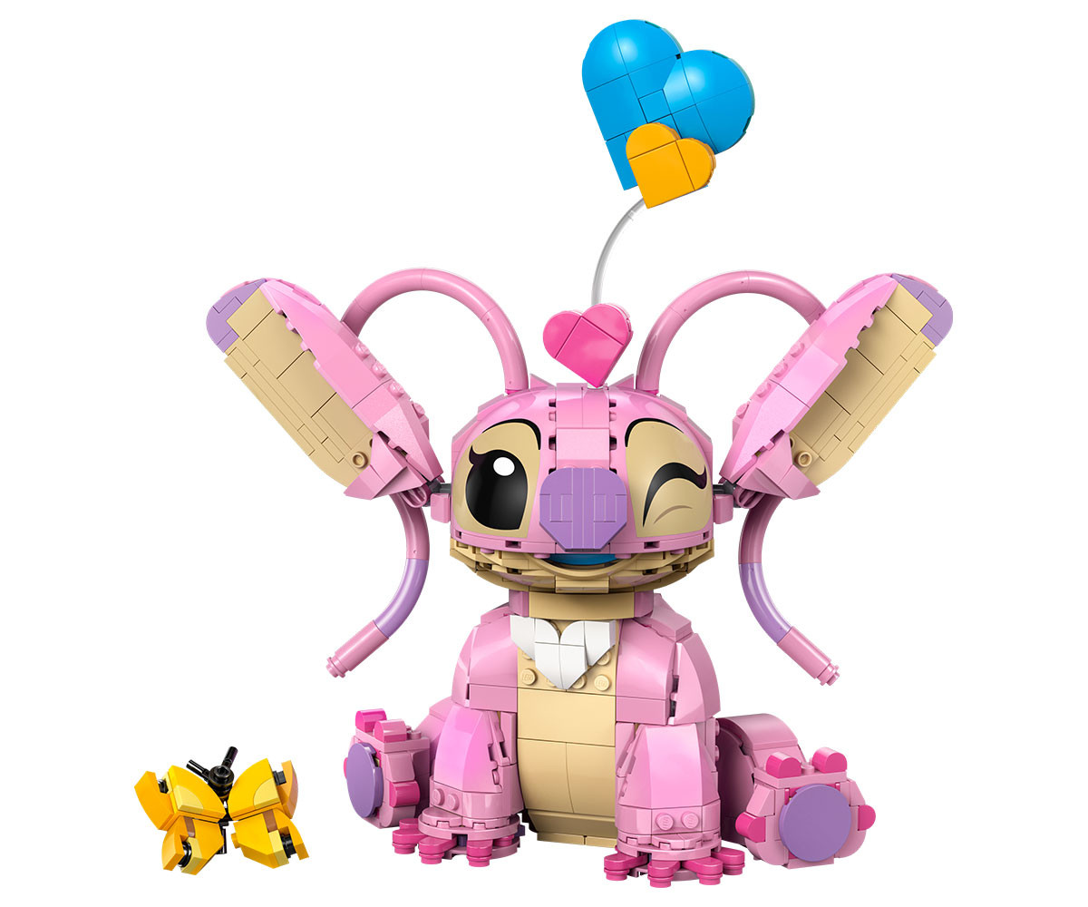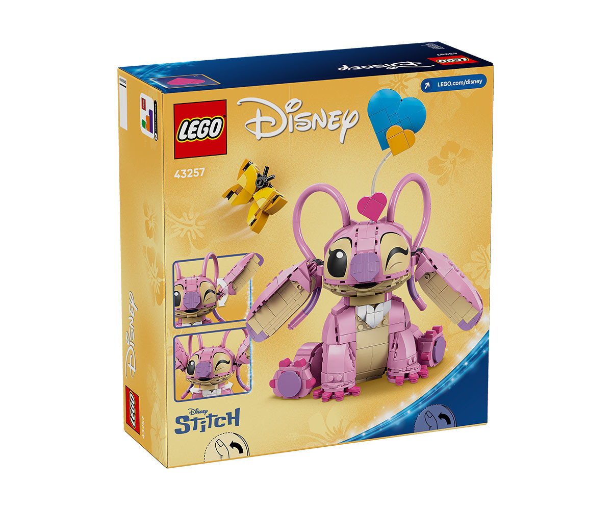 Сприятелете се с още едно сладко извънземно: Ейнджъл на Disney! Увеличете семейството на Стич, като създадете очарователната Ейнджъл от ТВ сериала Лило и Стич на Disney. Можете да я украсите с 3 „плаващи“ сърца или сладка пеперуда от тухлички. След това можете да покажете Ейнджъл в стаята си, с вдигнати или спуснати уши и глава, обърната напред или настрани със сладко изражение. Алоха!