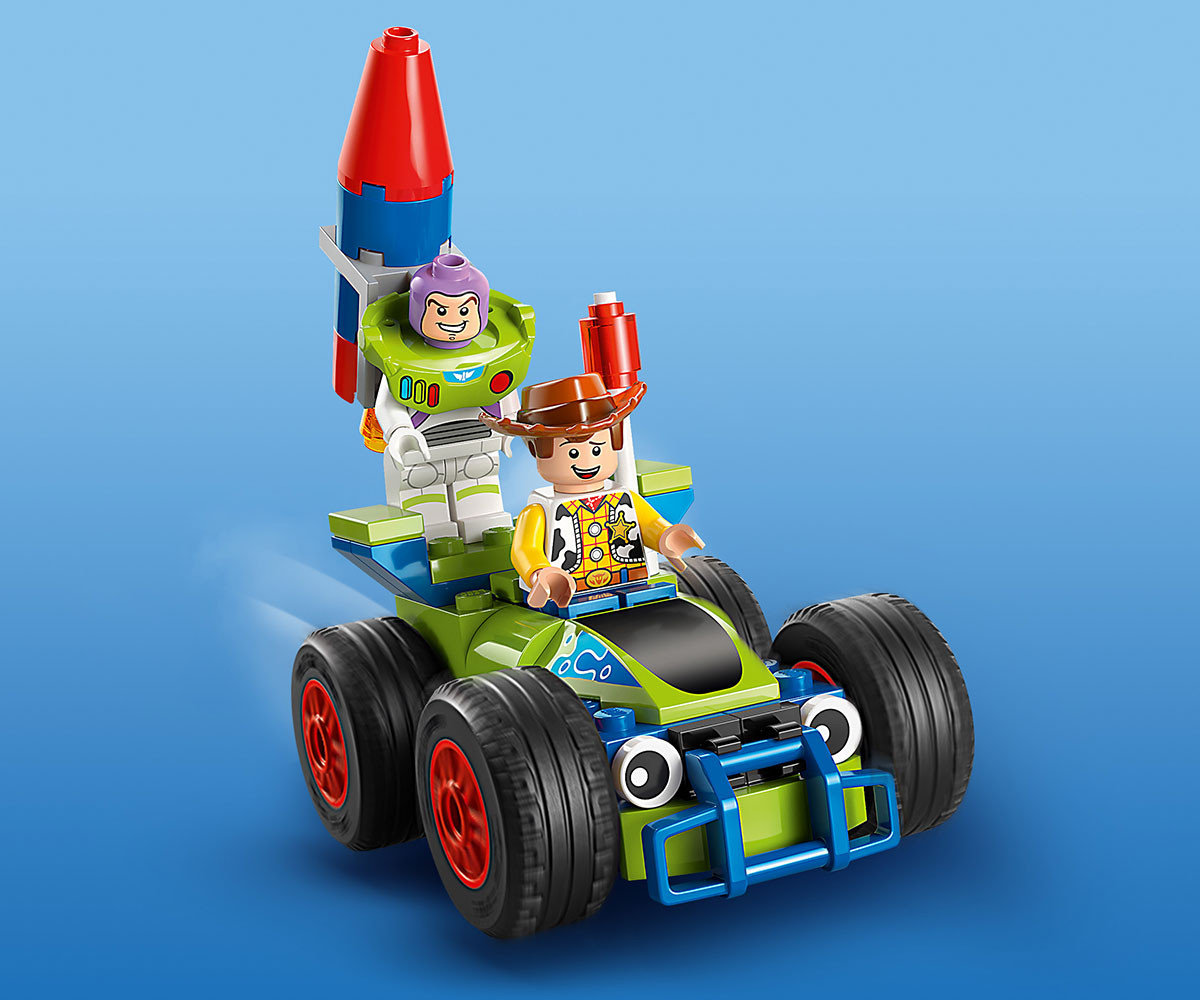 Зарадвайте всяко дете или фен с конструктор LEGO® ǀ Disney с локомотив, 2 платформи, кола и 4-ма герои LEGO ǀ Disney и Pixar от „Играта на играчките“.