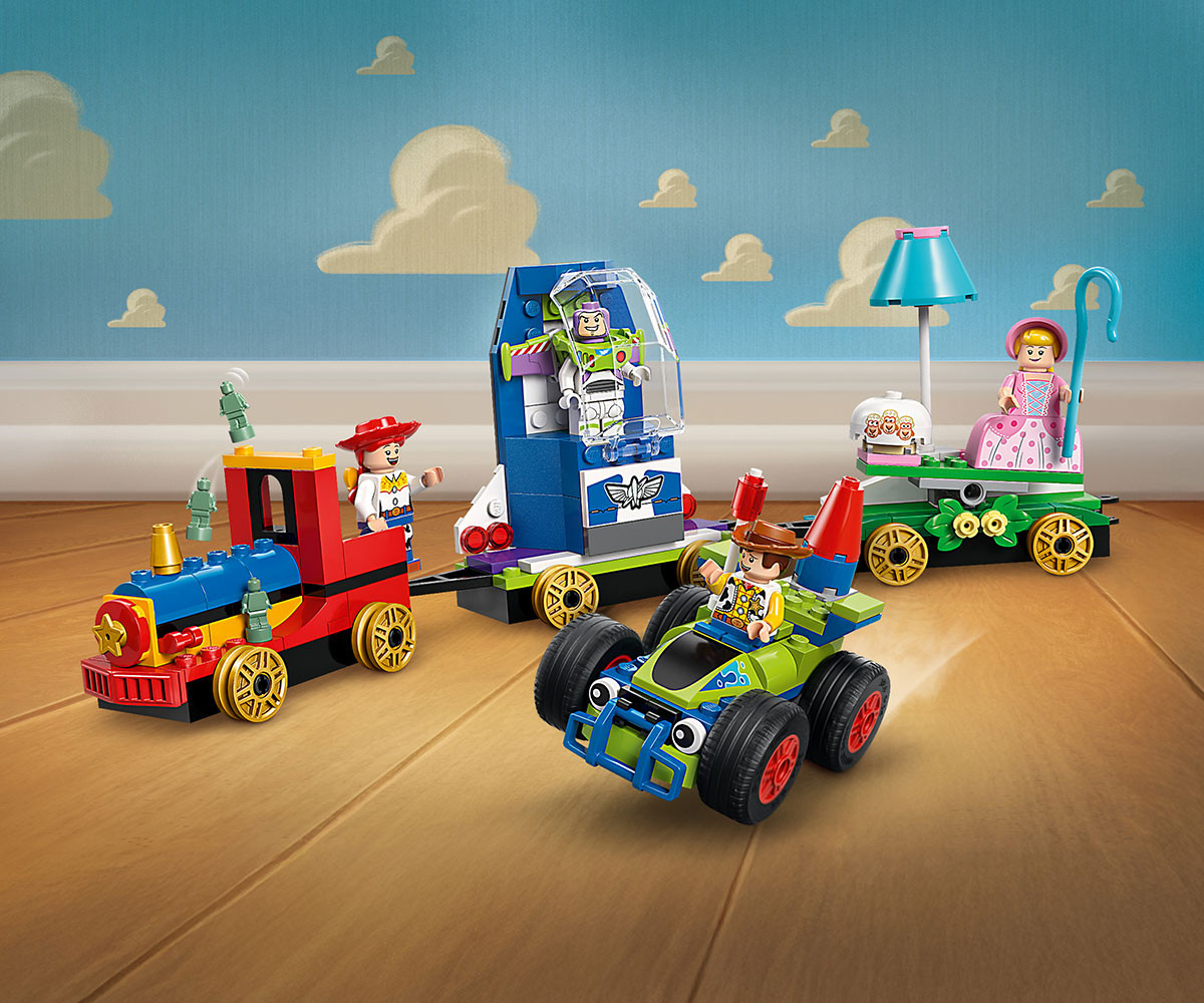Отпразнувайте 30 години от „Играта на играчките“ на Disney и Pixar със забавно пътуване с влак! Присъединете се към парада с Уди, Джеси, Бо-Пийп и Баз Светлинна година на Disney и Pixar. Има готин локомотив, платформа за Bo-Peep с нейните овце и люлка, както и страхотен космически кораб за Баз. Освен това има бърза кола, в която Уди да се вози, с място за ракетата на Баз. Всички на борда!