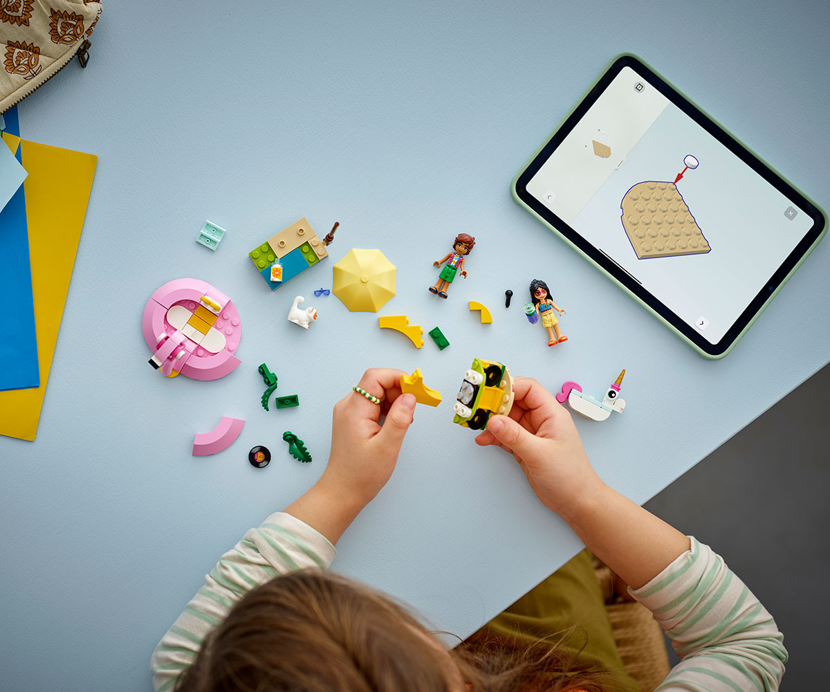 - Аксесоари за творческа игра – този комплект LEGO® се предлага със сладки аксесоари за стимулиране на креативността, включително слънцезащитен крем, две ледени близалки, напитка и микрофон;