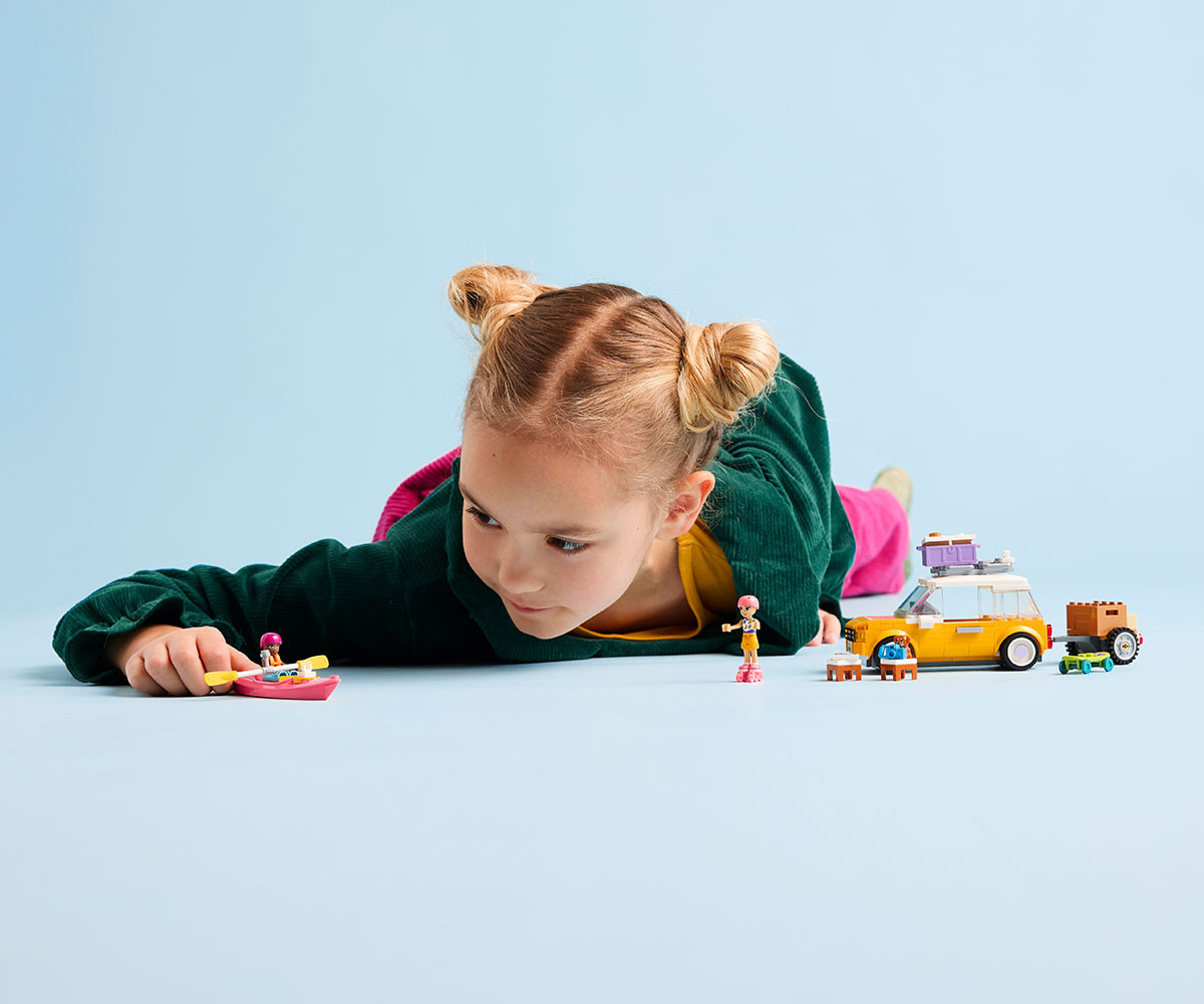 - Превозно средство LEGO® с ремарке за конструиране – забавлявайте се, докато построявате превозното средство, след което натоварете всичко, от което приятелите се нуждаят за пътешествието си, включително каяк и хладилна чанта;