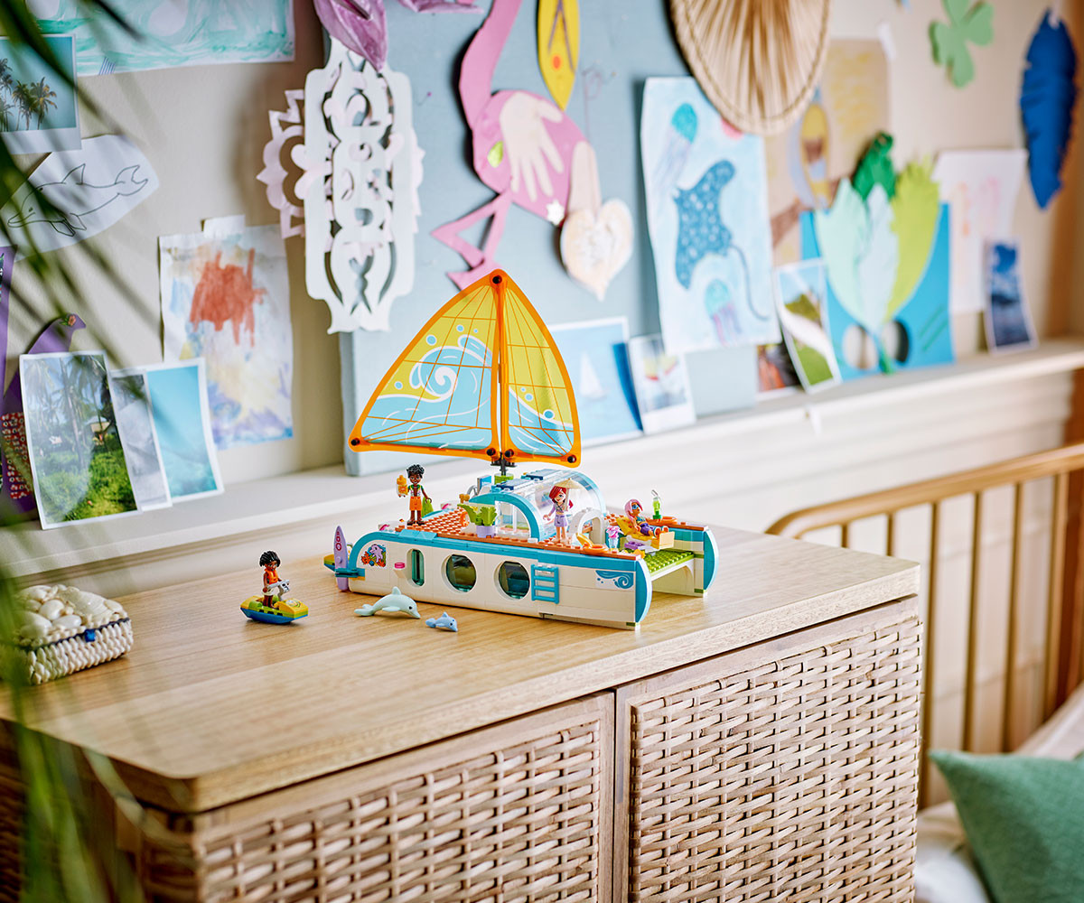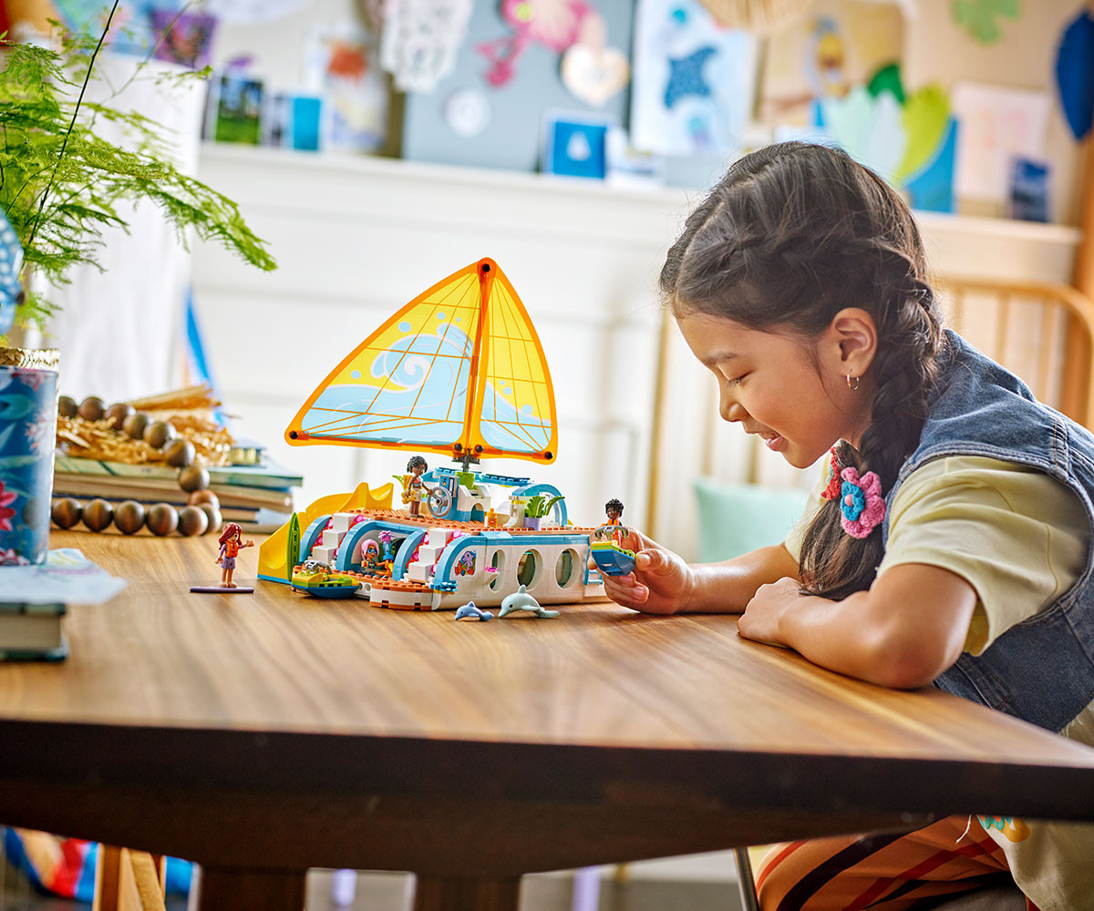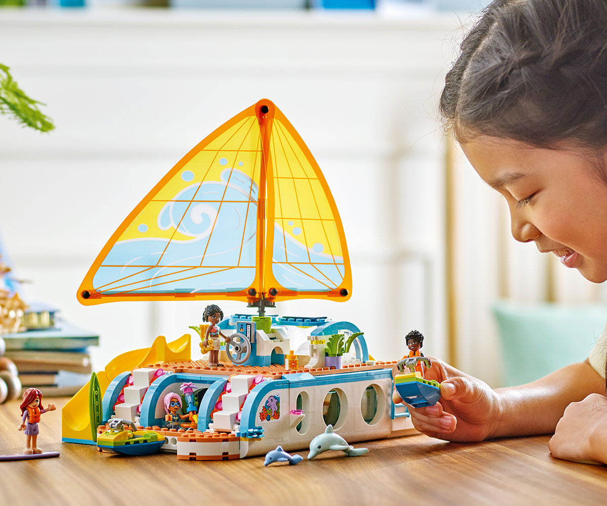 - Строителен комплект, пълен с истории – комплектът „Приключение с лодка“ за момичета, момчета и малки моряци на възраст над 8 години включва четири миникукли, два делфина и аксесоари за въображаема игра;