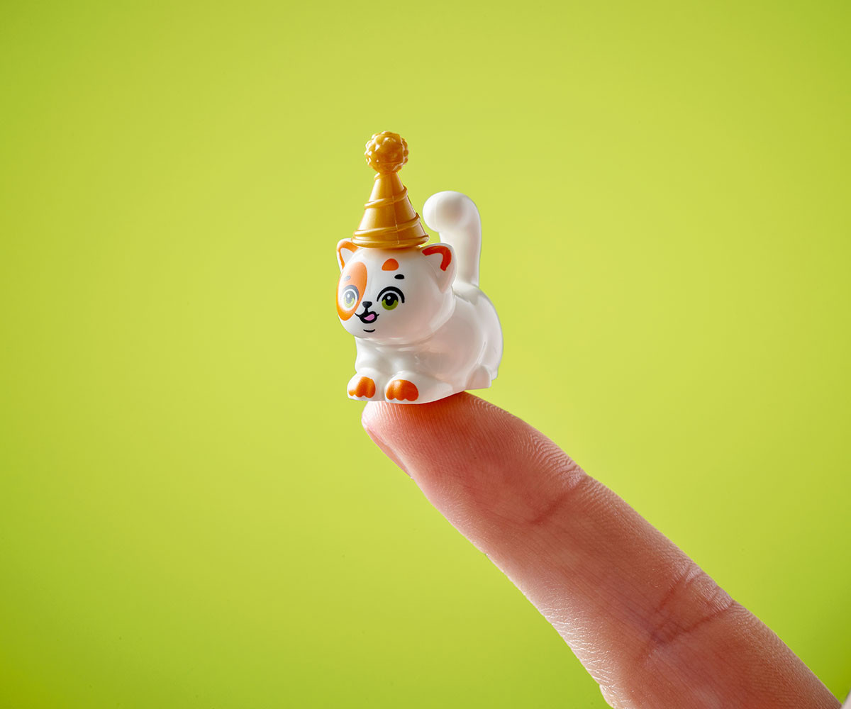 - Аксесоари на котешка тематика – децата могат да създават безкрайни забавни истории спомощта на аксесоарите, които включват торта за рожден ден със свещ, подаръци, банери, балони във формата на котка, шапка за рожден ден и лакомства за котки;