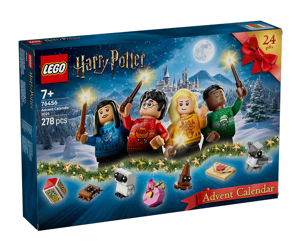 Отворете вратата към весели магьоснически приключения всеки ден в очакване на Коледа с детския строителен комплект „Коледен календар LEGO® Harry Potter™ 2025 г.“ (76456). Магическата коледна празнична играчка с Хари Потър за момчета, момичета и всички фенове на възраст над 7 години е пълна с изненади за конструиране, с които да създадете празнични истории от магьосническия свят. Коледният календар съдържа фигури LEGO на магически същества като Бъкбийк, Арагог и Патронус елен. Има и 8 минифигури LEGO на популярни герои, включително Хари Потър, Чо Чан, Драко Малфой и Луна Лъвгуд, всяка с коледен пуловер от Хогуортс и с пръчка. Забавни колекционерски миниконструкции на емблематични предмети като писмо за приемане в Хогуортс, кутия с всякаквовкусовите бобчета на Бърти Бот, разпределителната шапка, различни магически отвари и чудовищната книга на чудовищата допълват възможностите за игра. Комплектът съдържа 278 части.