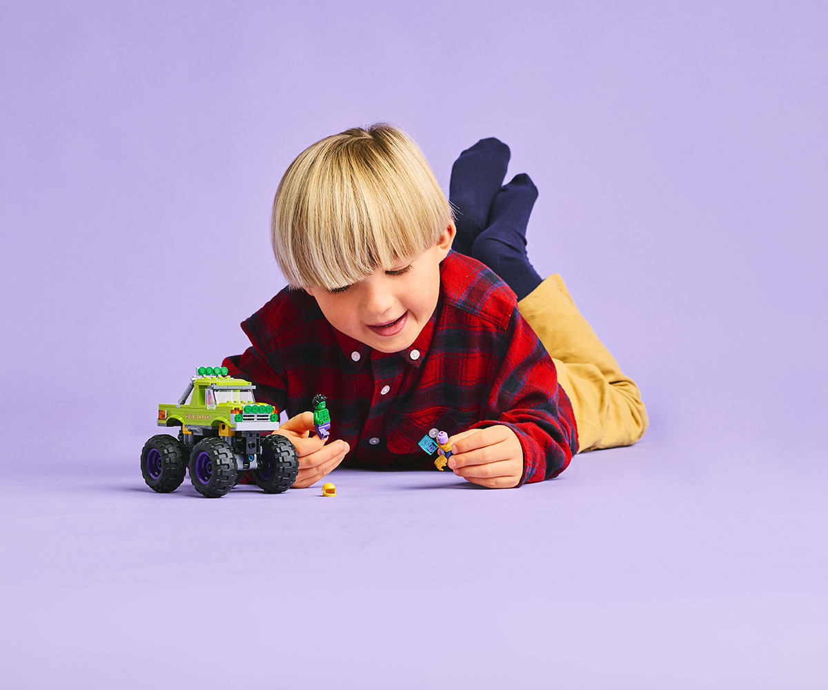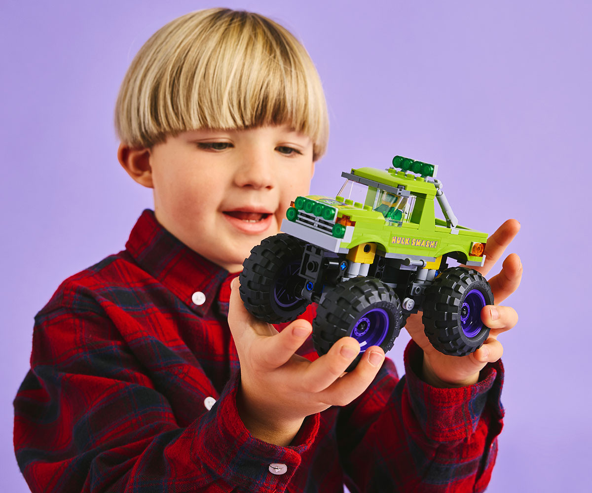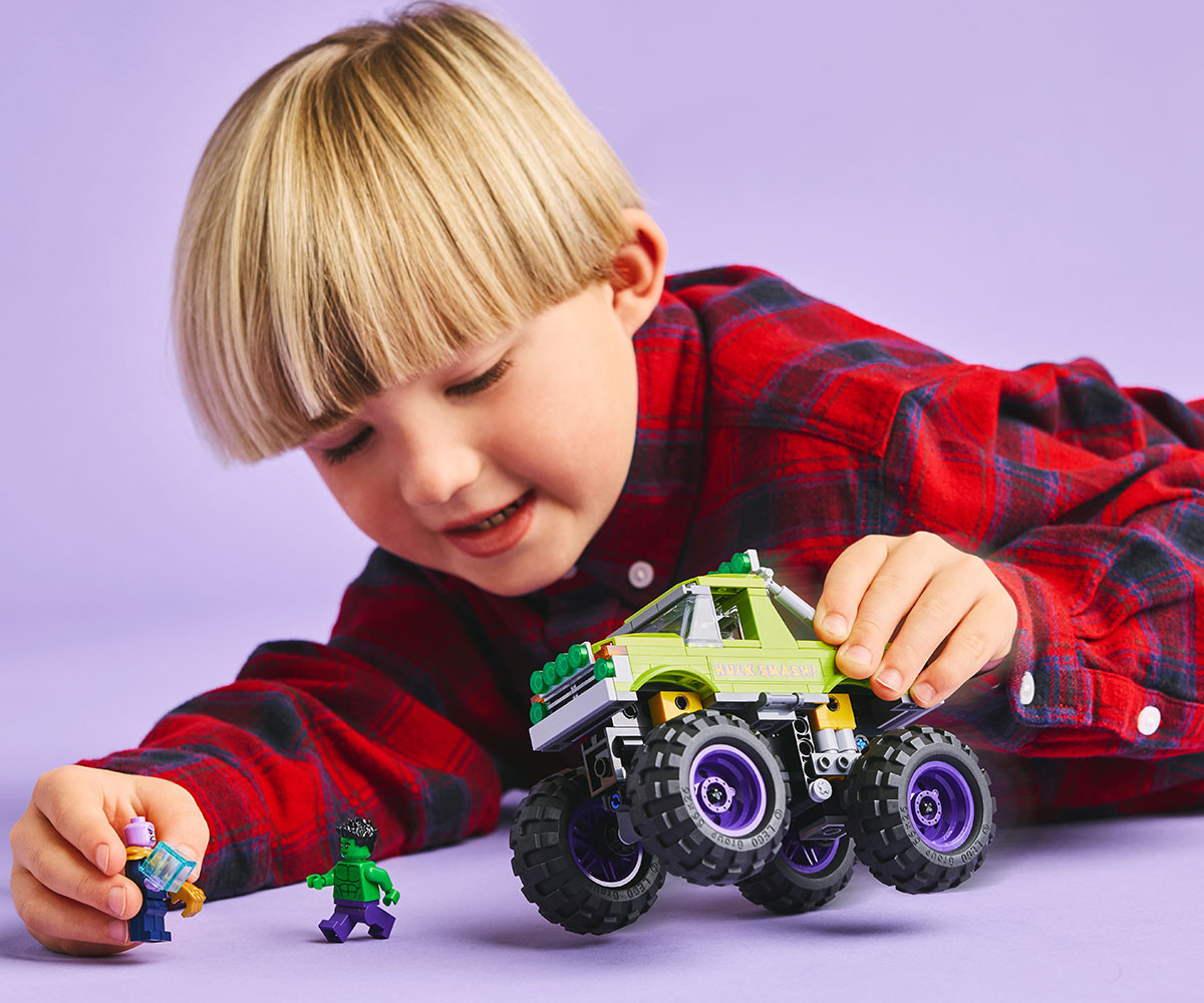 - Този тежкотоварен камион LEGO ǀ Marvel за конструиране се предлага с минифигура на Хълк с подвижна каска и минифигура на Танос с Тесеракт и Ръкавица на безкрайността;