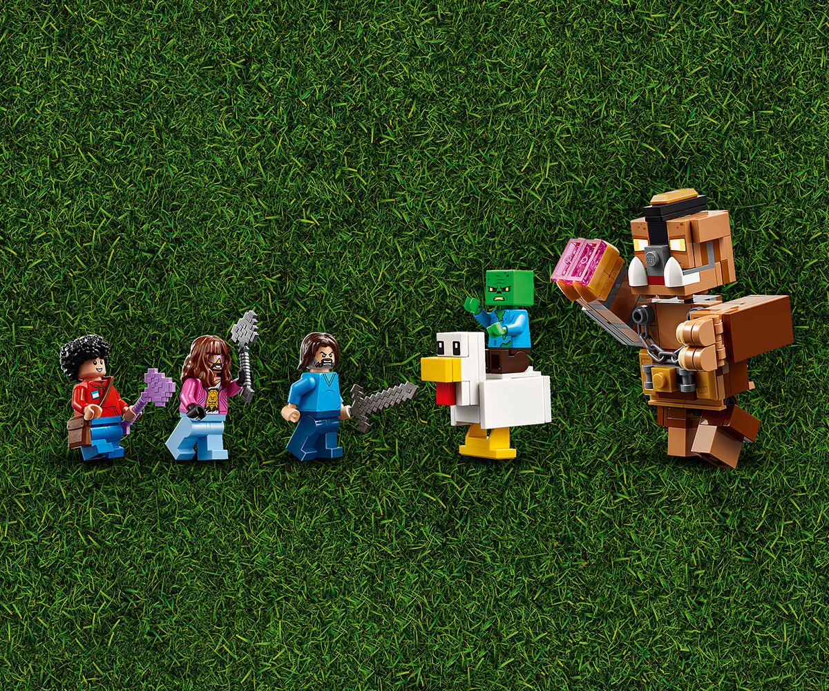 Вдъхнете живот на филма за Minecraft® със Стив, Гарет, Хенри и жокей на пилета, които се впускат в сблъсъка в имението! Изберете оръжията си и нека битката започне. Но бъдете готови да се изправите срещу Великото прасе, което атакува всички!
