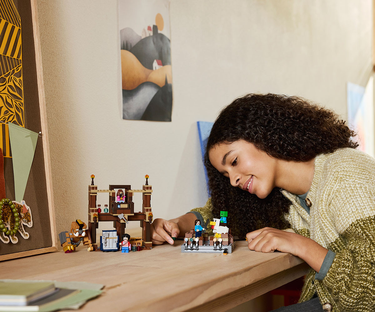 - Геймърски продукти LEGO® Minecraft® – децата, които обичат Minecraft и филма за Minecraft, могат да вдъхнат живот на бойни сцени от видеоигрите с „Боен ринг в Горското имение“ за момчета и момичета на възраст над 10 години;