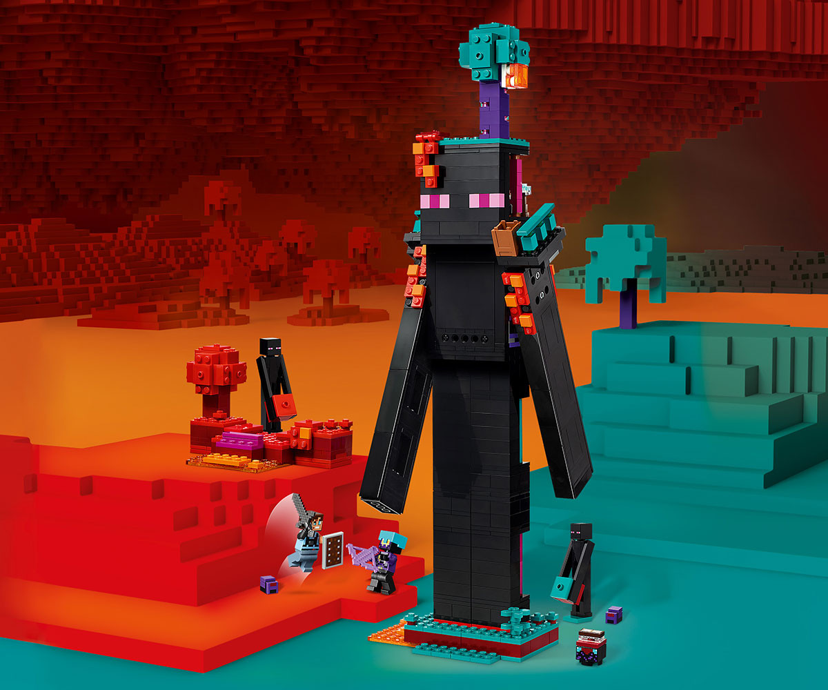 Постройте и изследвайте своя мегакула на Ендърмен. Неговите подвижни ръце и модулен дизайн ви позволяват да създавате, играете и показвате в епичния стил на Minecraft®! Добавете герои LEGO® Minecraft, терен от изкривените и пурпурни гори, съкровища и оръжия. След това преустройте кулата в крепост на Ендърмен! Влезте в изпълнените с екшън стаи и Портала към ада за безкрайни нови приключения!