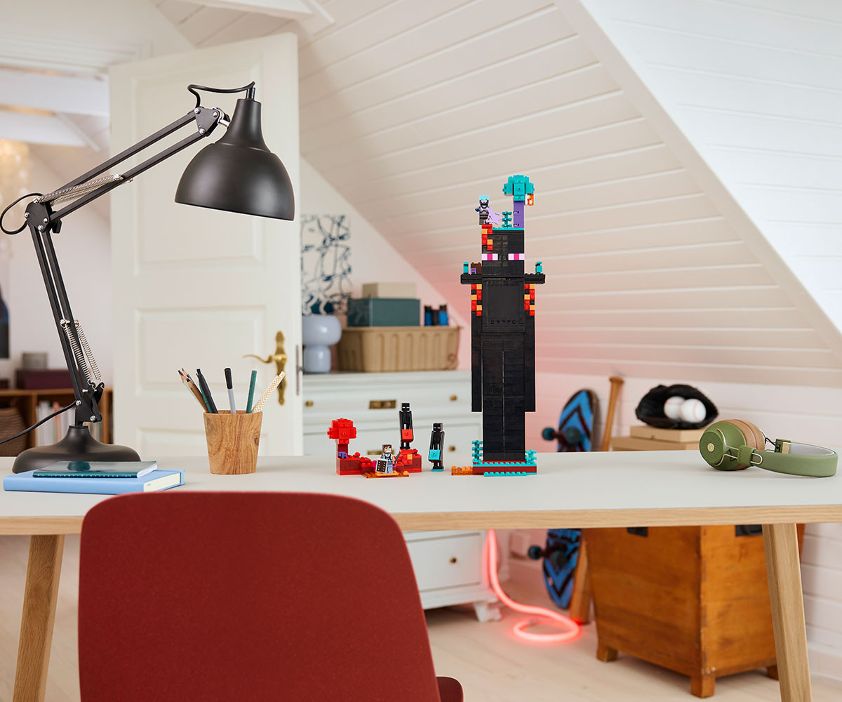 Създайте епична подвижна фигура LEGO® Minecraft® и декорация за стая за игри с голямата кула на Ендърмен.