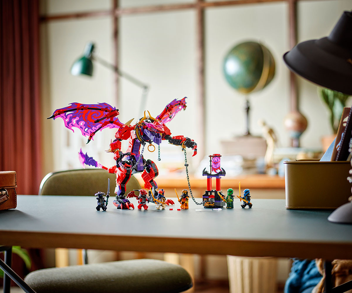 - Играчка с дракон LEGO® NINJAGO® за деца – нинджа играчката „Гръмотевичен зъб, Дракон на хаоса“ позволява на момчета и момичета на възраст над 8 години да пресъздадат сцени от сезон 3 на ТВ сериалаNINJAGO Dragons Rising;