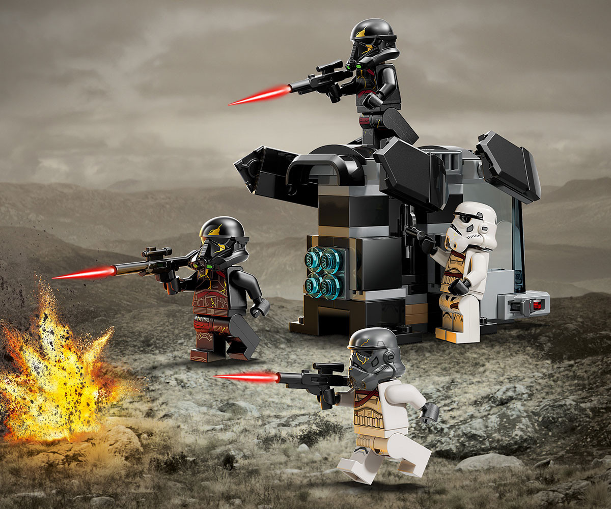 - „Боен пакет: Щурмовак на смъртта и Нощен щурмовак“ – транспортирайте взвод и разиграйте приключения от Star Wars: Ahsoka™ с тази строителна играчка за деца с десантен кораб от тухлички LEGO®;