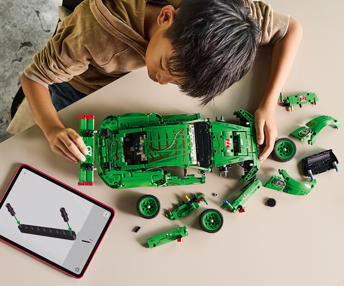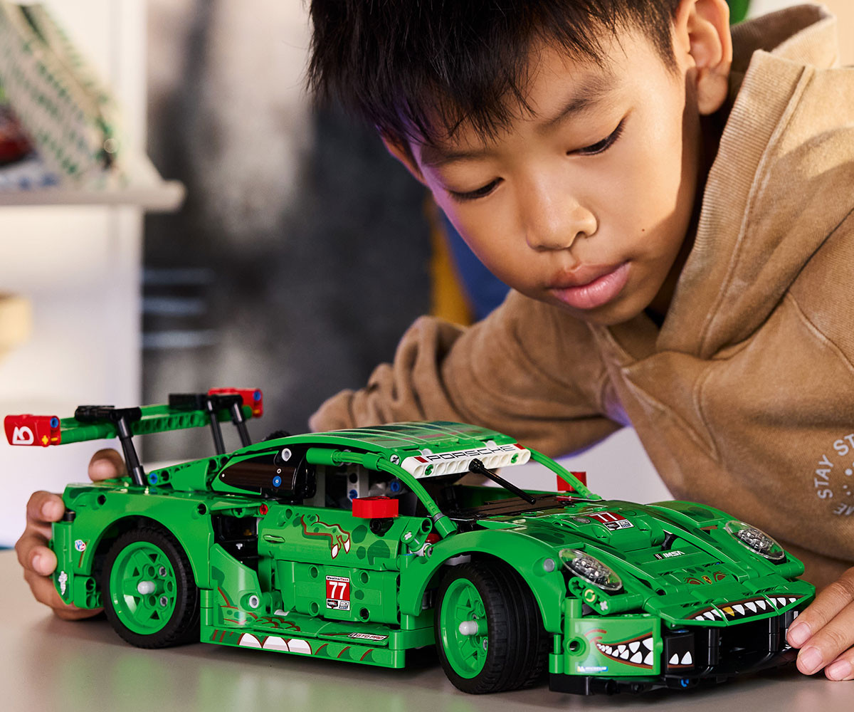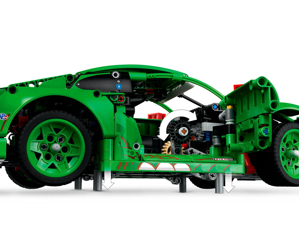 Децата могат да поемат контрола с помощта на копчето за управление отгоре, след което да проверят работното окачване на всичките 4 колела, задвижването на задното колело с диференциала, 6-цилиндров боксерен двигател с правилен ред на изстрелване, отварящи се врати и багажник и синхронизирани пневматични крикове. А със своята свирепа T. rex тема моделът изглежда също толкова страхотен на показ, колкото и на пистата. Този комплект е забавен подарък за фенове на динозаврите и любители на автомобилите. Комплектите LEGO® Technic се отличават с реалистични движения и механизми, които въвеждат младите строители на LEGO във вселената на техниката по достъпен и реалистичен начин. Децата могат да строят уверено с приложението LEGO Builder – да мащабират, да завъртат в 3D и да проследяват напредъка си с лесни за следване цифрови инструкции. Пригответе се да се спуснете по пистата с тази състезателна LEGO® Technic Кола Porsche 911 GT3 R REXY AO Racing. Разгледайте свирепите детайли на тема динозаври – точно като тези на истинската състезателна кола. Изпитайте превозното средство, докато контролирате кормилното управление и тествате окачването. Погледнете под капака, за да откриете 6-цилиндровия боксорен двигател, след което изстреляйте синхронизираните пневматични крикове. Време е за състезание!