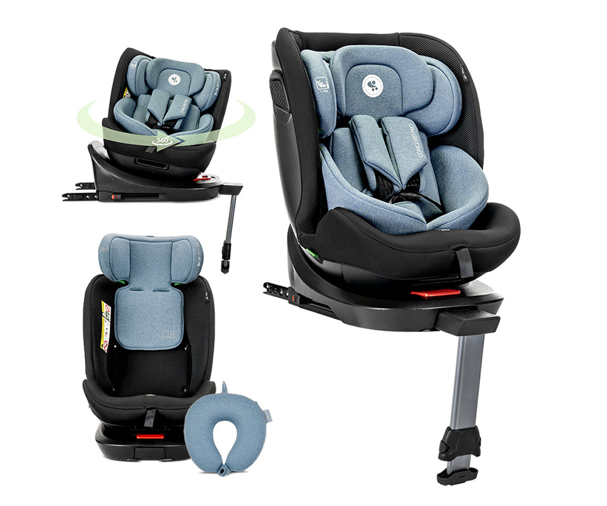 Lorelli - Въртящо се детско столче за кола Concord Pro 360°, Isofix, i-Size 40-150 см, Support Leg и възглавница за път, blue